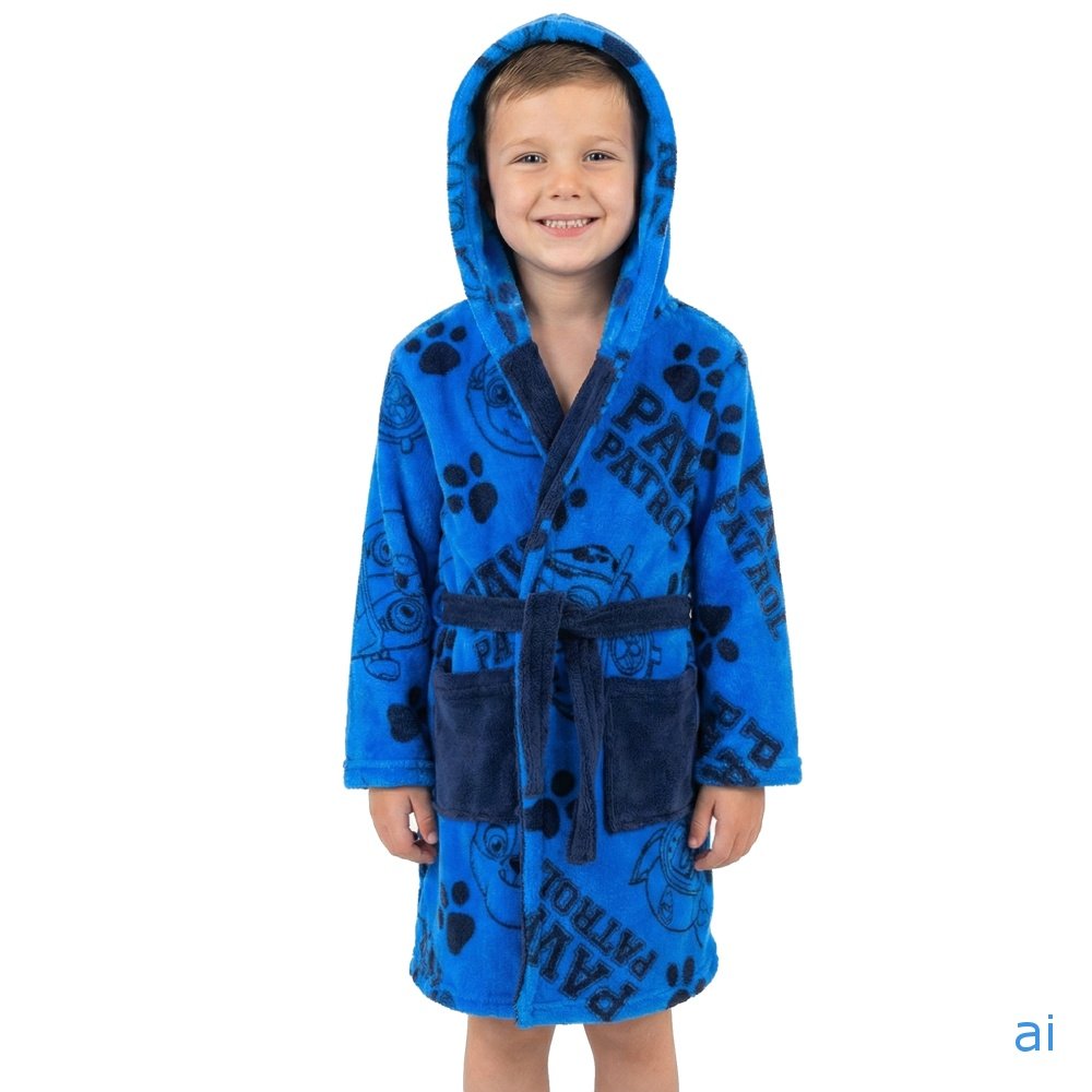 Dětský župánek Tlapková patrola s portréty psích záchranářů, otisky tlapek a nápisy Paw Patrol. ...