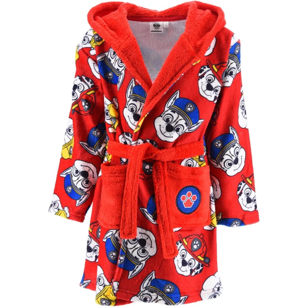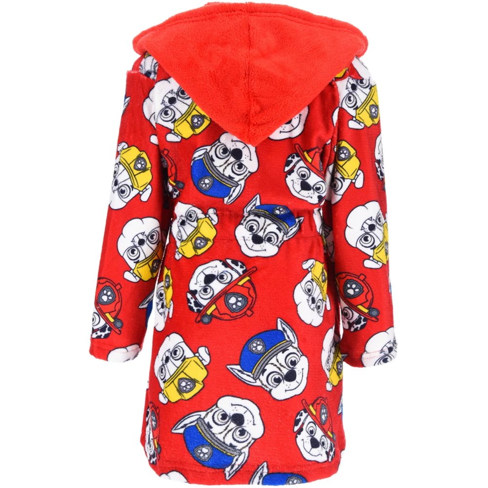 Červený dětský župánek Paw Patrol s obrázky oblíbených záchranářů Chase, Marshalla a Rubbleho. Má kapuci, dvě kapsy a pásek v pase. Vyrobený z mimořádně hebkého materiálu WellSoft. Dostupný ve velikostech 98, 104, 110 a 116.