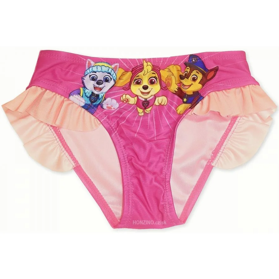 Dětské plavkové kalhotky Tlapková patrola - Paw Patrol - s obrázkem "tlapek" Everest, Skye a Chase. V pase a v lemu nohavic mají gumu. Okolo nohaviček jsou ozdobené volánkem. Materiál plavek je poměrně elastický, takže se dobře přizpůsobí tělu a proto se snadno oblékají a ... Celý text