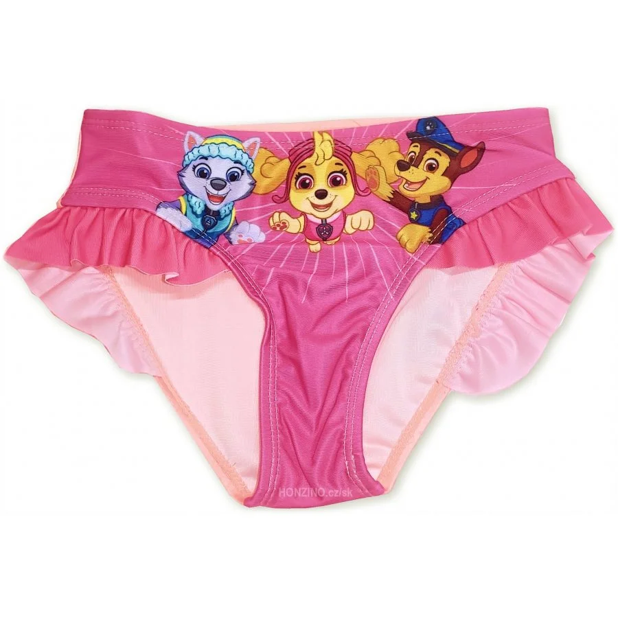 Dětské plavkové kalhotky Tlapková patrola - Paw Patrol - s obrázkem "tlapek" Everest, Skye a Chase. V pase a v lemu nohavic mají gumu. Okolo nohaviček jsou ozdobené volánkem. Materiál plavek je poměrně elastický, takže se dobře přizpůsobí tělu a proto se snadno oblékají a ... Celý text