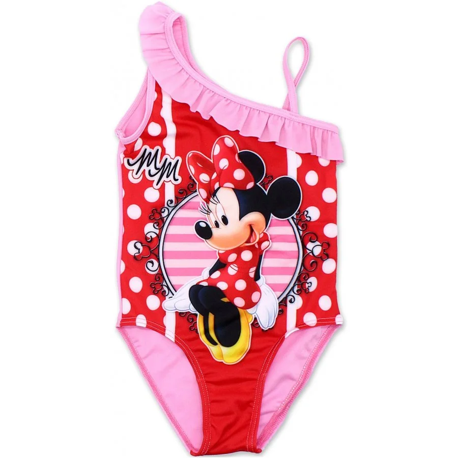 Holčičí jednodílné plavky Minnie Mouse - Disney. Asymetrické dívčí plavky s obrázkem oblíbené myšky Minnie v medailonku na puntíkovaném podkladu. Z vnitřní strany spodní části je jemná bílá podšívka. Zadní část plavek a volánek jsou světle, nebo tmavě růžové - viz výběr barvy a velikosti níže. Materiál plavek je poměrně elastický, takže se dobře přizpůsobí tělu, snadno se oblékají a pohodlně se nosí.