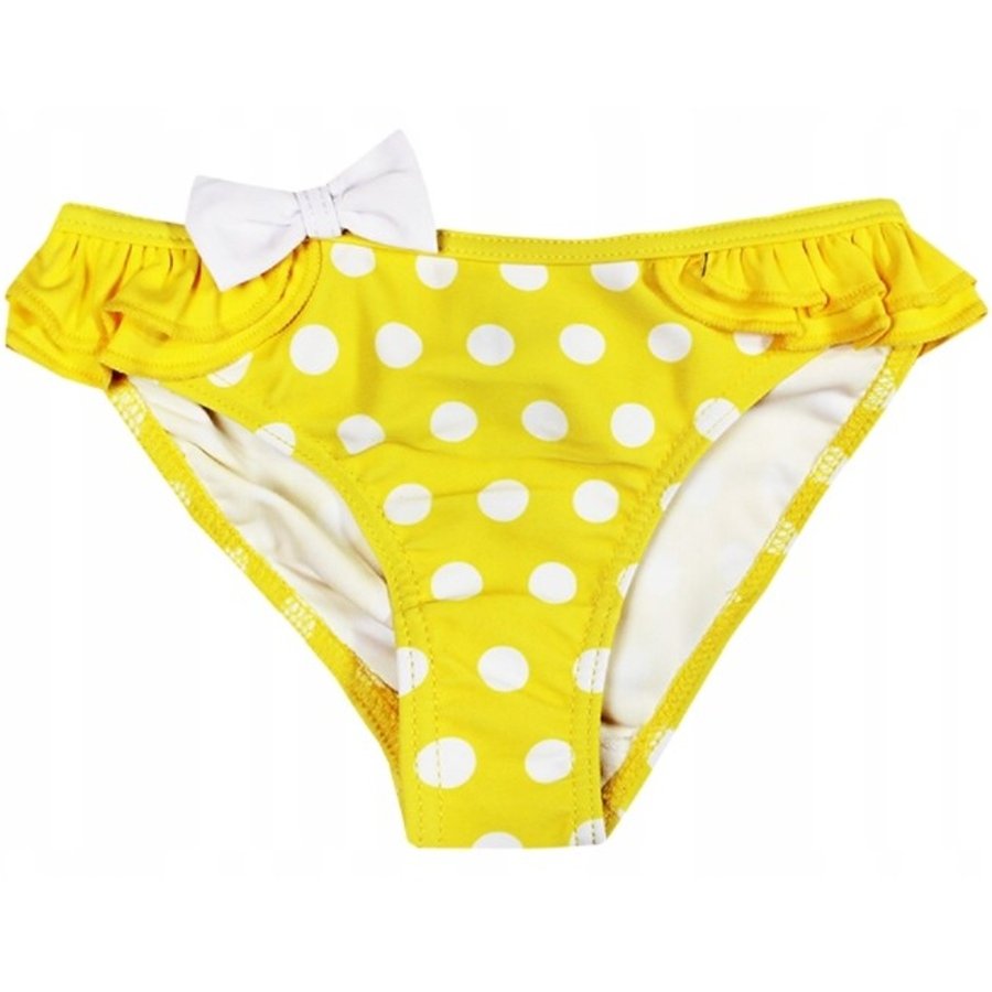 Holčičí dvojdílné puntíkované plavky Minnie Mouse - Disney. Horní díl plavek zdobí obrázek legendární myšky Minnie a nápis s jejím jménem na tyrkysovém, nebo žlutém podkladu s bílými puntíky - viz výběr barvy a velikosti. Spodní díl je ozdobený volánkem okolo pasu. To vše elegantně doplňuje bílá mašlička u pasu spodního dílu a ve spoji ramínek na zádech horního dílu. Z vnitřní strany spodní části kalhotek je jemná bílá podšívka. Materiál plavek je poměrně elastický, takže se dobře přizpůsobí tělu a pohodlně se nosí.