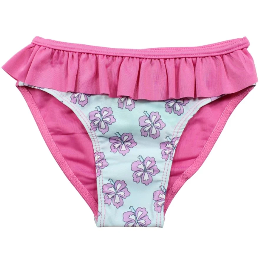 Dívčí bikiny L.O.L. Suprise. Fialkové plavky s tyrkysovými lemy a ozdobným volánkem okolo boků. ...