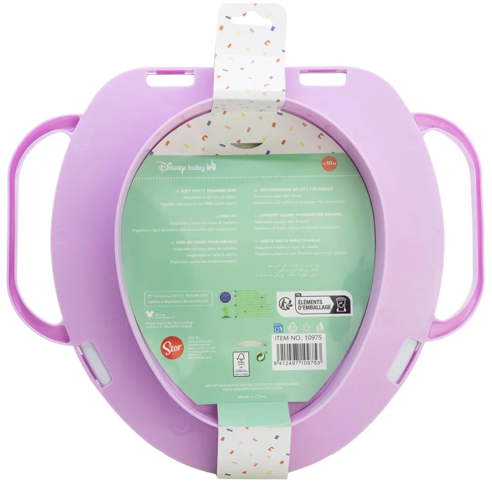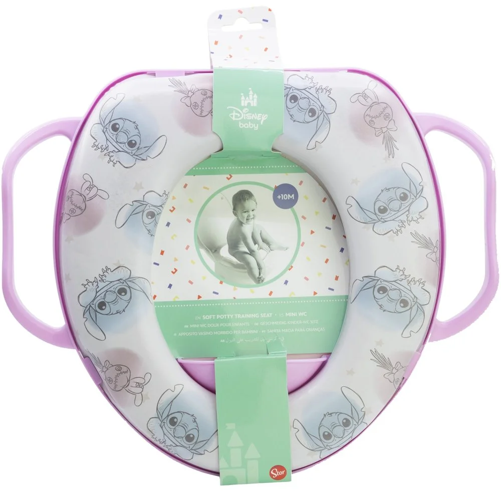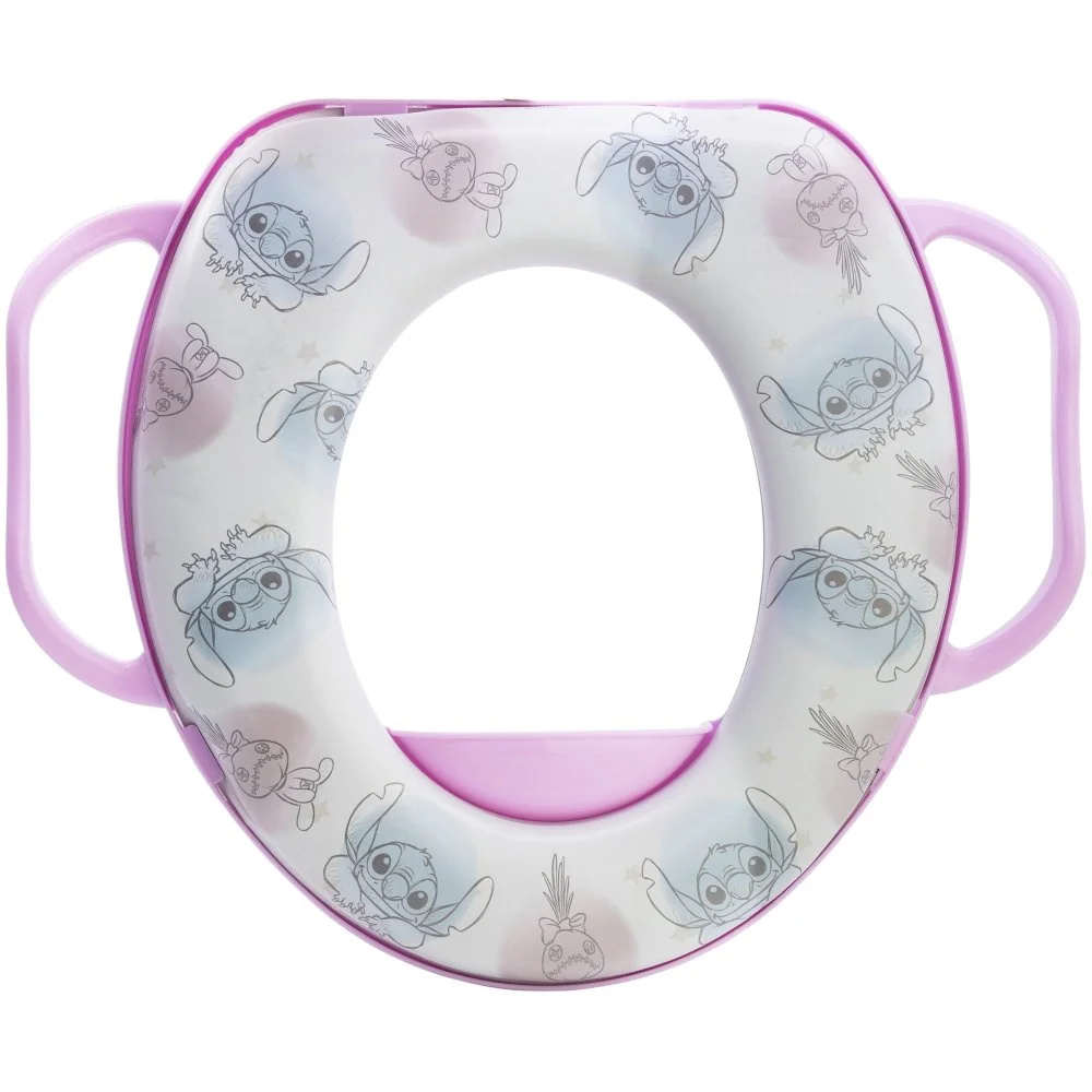 Měkká WC redukce Lilo & Stitch s madly pomáhá dětem od 10 měsíců při přechodu z nočníku na toaletu. Nabízí pohodlné sezení, bezpečný úchop a snadné čištění. Pasuje na většinu standardních WC sedátek.