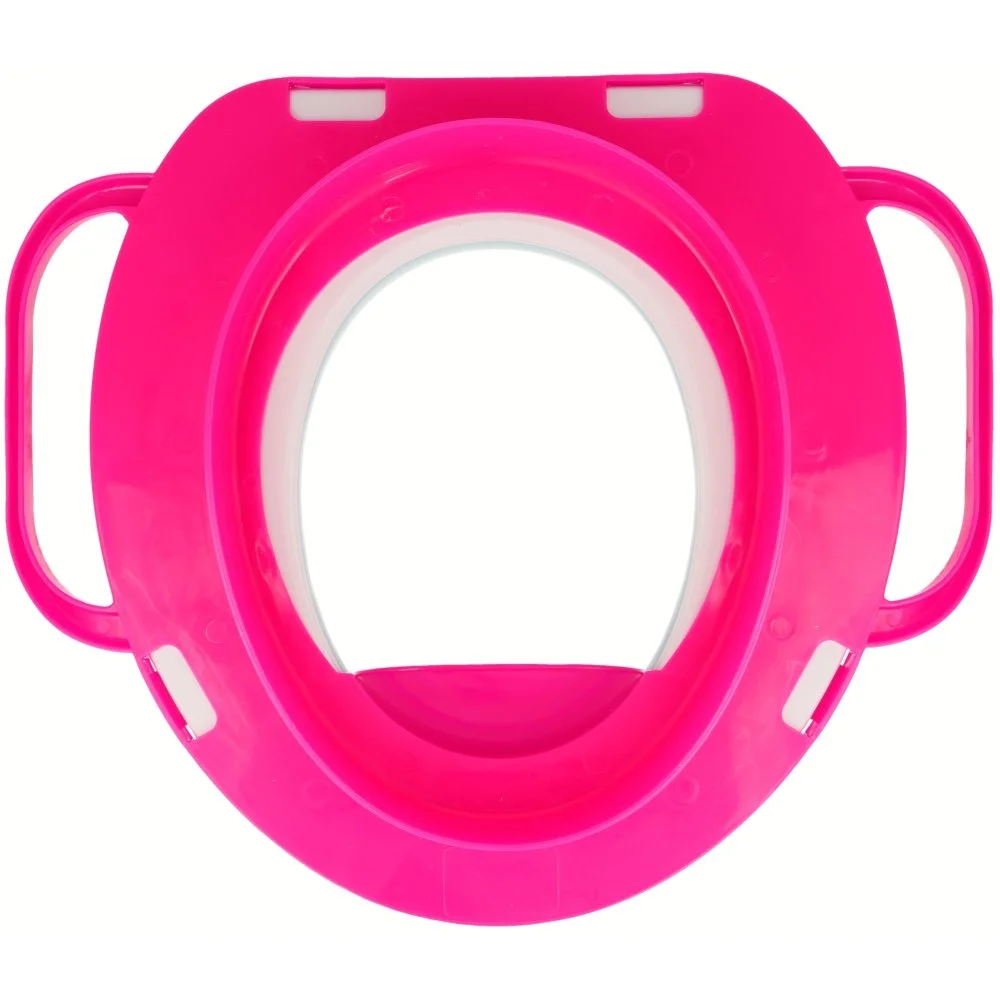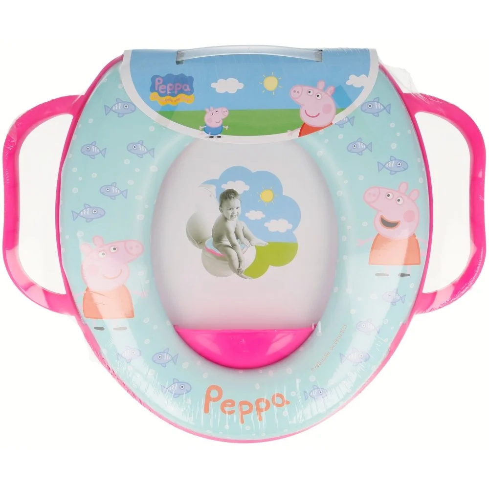 Měkká WC redukce Peppa Pig s madly pomáhá dětem od 10 měsíců při přechodu z nočníku na toaletu. Nabízí pohodlné sezení, bezpečný úchop a snadné čištění. Pasuje na většinu standardních WC sedátek.