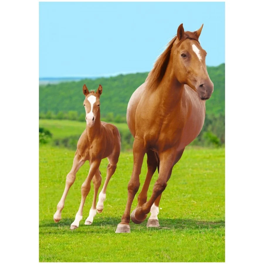 Flísová deka s kobylou a jejím hříbětem. Je vyrobená z příjemného, měkoučkého a hřejivého polar fleece šetrného k pokožce s jemným tiskem ve vysoké tiskové kvalitě. Tato deka s koňmi má široké uplatnění po celý rok. Její barvy jsou velice intenzivní i po mnoha vypráních. Rozměr 100 x 140 cm.