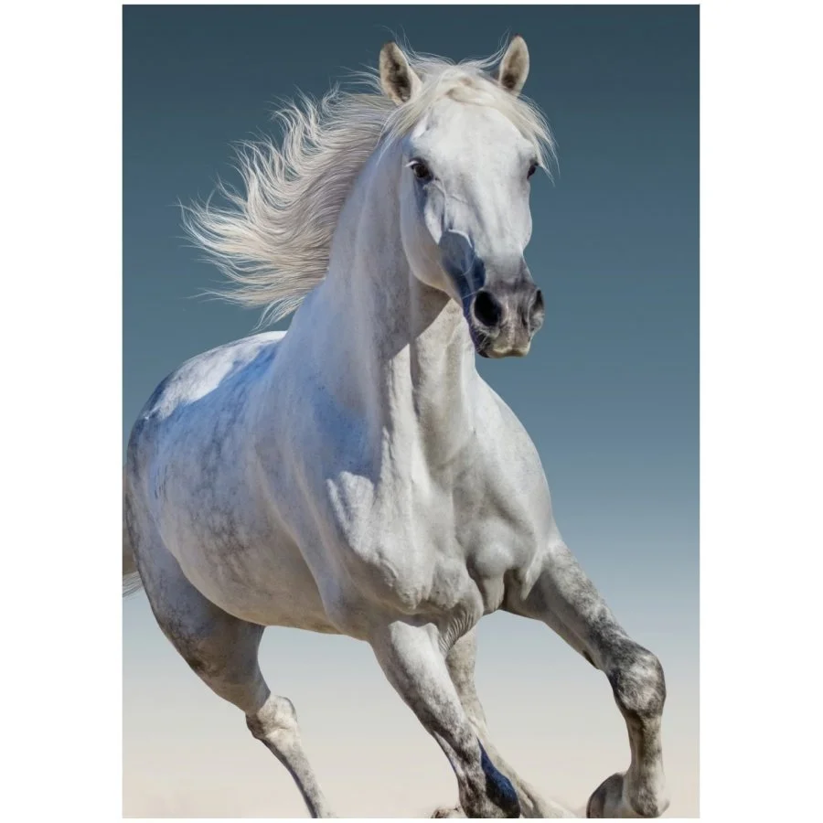 Flísová deka s koněm běloušem ve cvalu. Je vyrobená z příjemného, měkoučkého a hřejivého polar fleece šetrného k pokožce s jemným tiskem ve vysoké tiskové kvalitě. Tato deka s koňmi má široké uplatnění po celý rok. Její barvy jsou velice intenzivní i po mnoha vypráních. Rozměr 100 x 140 cm.