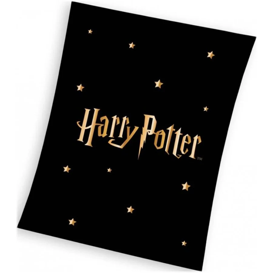Flísová deka Harry Potter - motiv Gold Stars. Je vyrobená z příjemného, měkoučkého a hřejivého mikroplyše s gramáží 200 gr./m². Zdobí ji zlaté logo Harry potter uprostřed a okolo spousta zlatých hvězdiček. Tato deka má široké uplatnění po celý rok. Její rozměry jsou 130 x 170 cm.