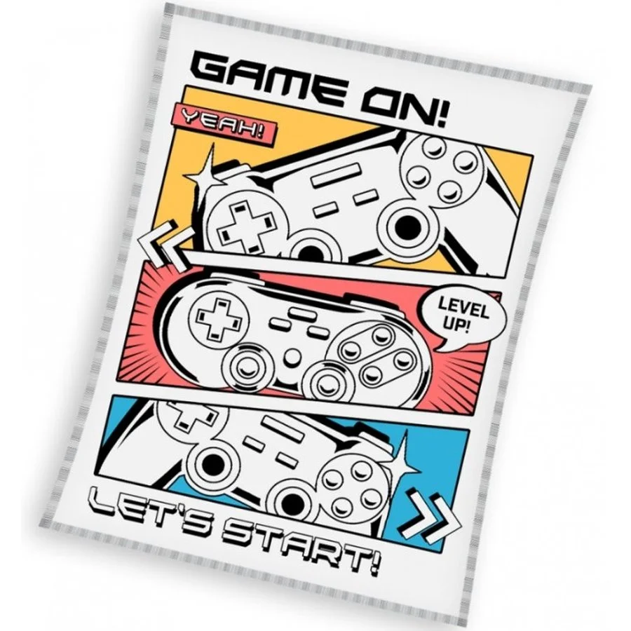 Flísová deka s motivem Game On! Let's start! Je vyrobená z příjemného, měkoučkého, chlupatého, huňatého a hřejivého coral fleece s gramáží 240 g/m². Zdobí ji obrázek ovladačů herních konzol na šedém podkladu. Má široké uplatnění po celý rok nejen doma, ale zahřeje i při cestování, nebo ji třeba můžete použít jako podložku na sednutí, či lehnutí kdekoliv. Díky digitálnímu tisku jsou barvy na dece pestřejší a obrysy i stínování detailnější. Rozměry této deky jsou 150 x 200 cm.