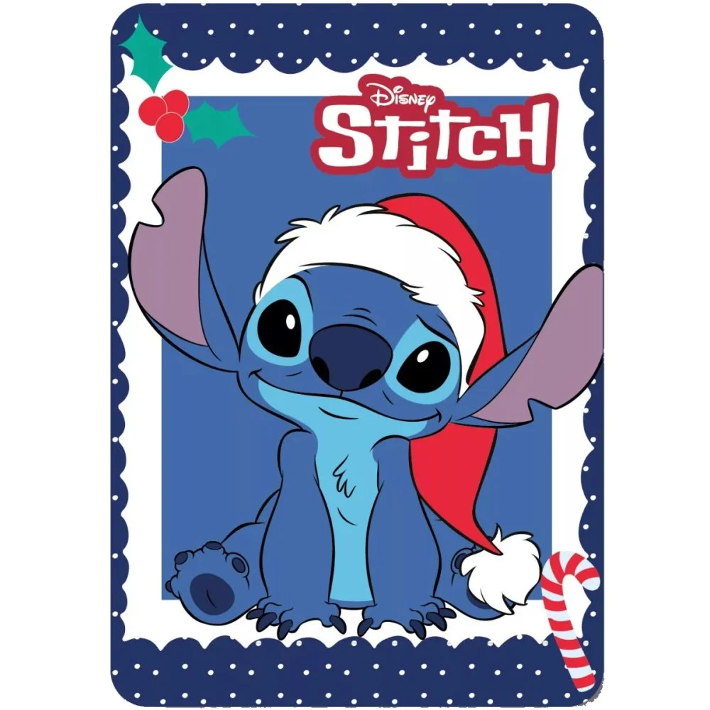 Flísová deka Lilo & Stitch s motivem oblíbeného mimozemšťana Stitche ve vánoční čepici. Vyrobená z příjemného polar fleece, který si zachovává syté barvy i po opakovaném praní. Rozměr 100 × 140 cm.