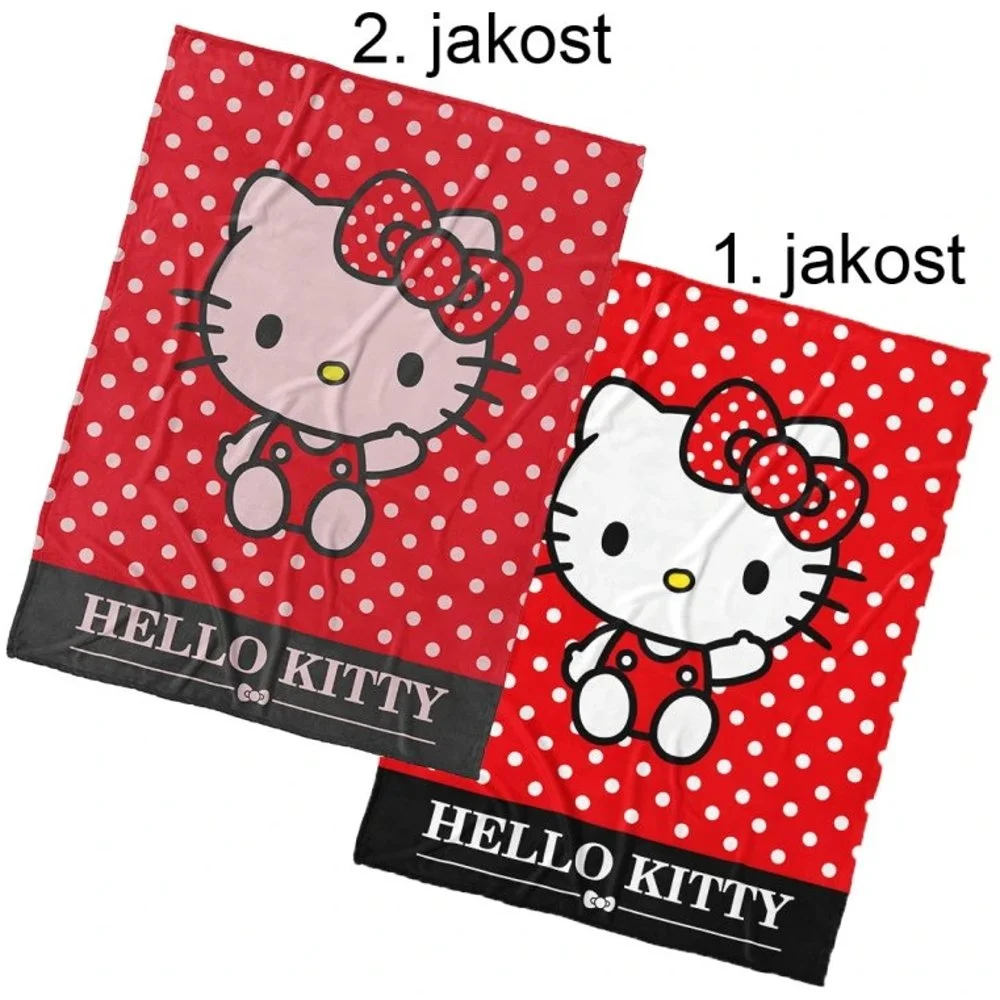 Více o produktuVelká flísová deka Hello Kitty. Je vyrobená z příjemného, měkoučkého, chlupatého, huňatého a hřejivého coral fleece s gramáží 240 g/m². Zdobí ji obrázek kočičky Kitty s její charakteristickou mašlí na červeném podkladu s bílými puntíky. Tato deka má široké uplatnění po celý rok jak doma, zahřeje při cestování, nebo ji třeba můžete použít jako podložku na sednutí, či lehnutí kdekoliv. Rozměry této deky jsou 150 x 200 cm.