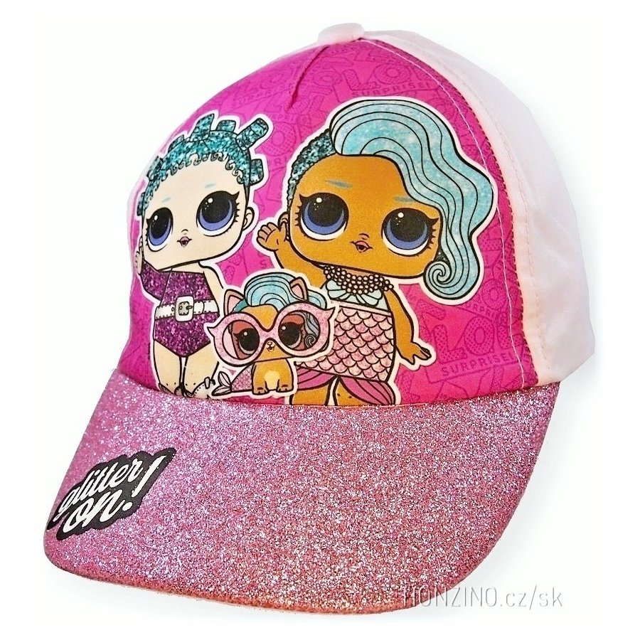 Dětská baseballová čepice s kšiltem s třpytkami L.O.L. Surprise. Přední stranu čepice zdobí obrázek okatých panenek L.O.L. Zadní část této čepice LOL a spodní část dobře vyztuženého kšiltu je světle růžová. Ze zadní strany je také nastavovací pásek se suchým zipem. Pokud tuto kšiltovku nemáme skladem ve Vámi vybrané velikosti, zvažte koupi stejné kšiltovky v tmavším provedení, kterou také najdete v naší nabídce.