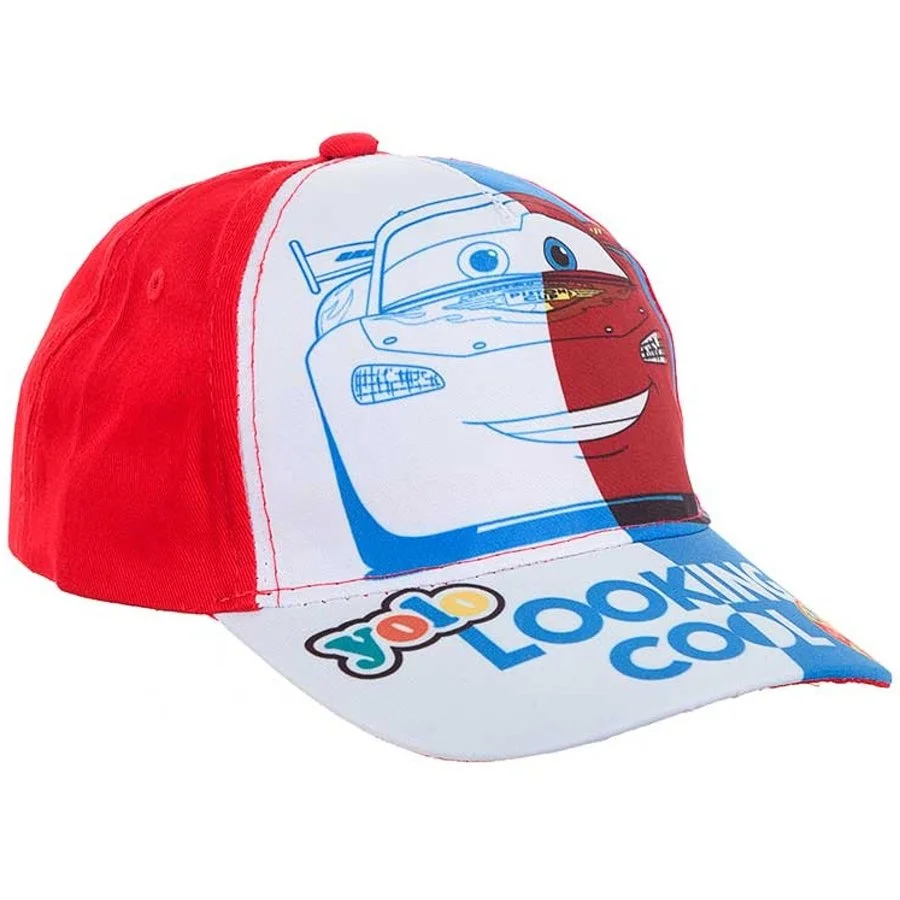 Dětská baseballová čepice s kšiltem Auta - Cars - motiv Looking Cool. Tato kšiltovka je vyrobena z čistě bavlněného plátna, materiál potisku je polyester. Přední panel čepice zdobí silueta závodníka Bleska McQueena v červeno - modro - bílém provedení. Zbývající část čepice a spodní část kšiltu je modrá, nebo červená - viz výběr velikosti a barvy. Ze zadní strany je nastavovací pásek se suchým zipem.