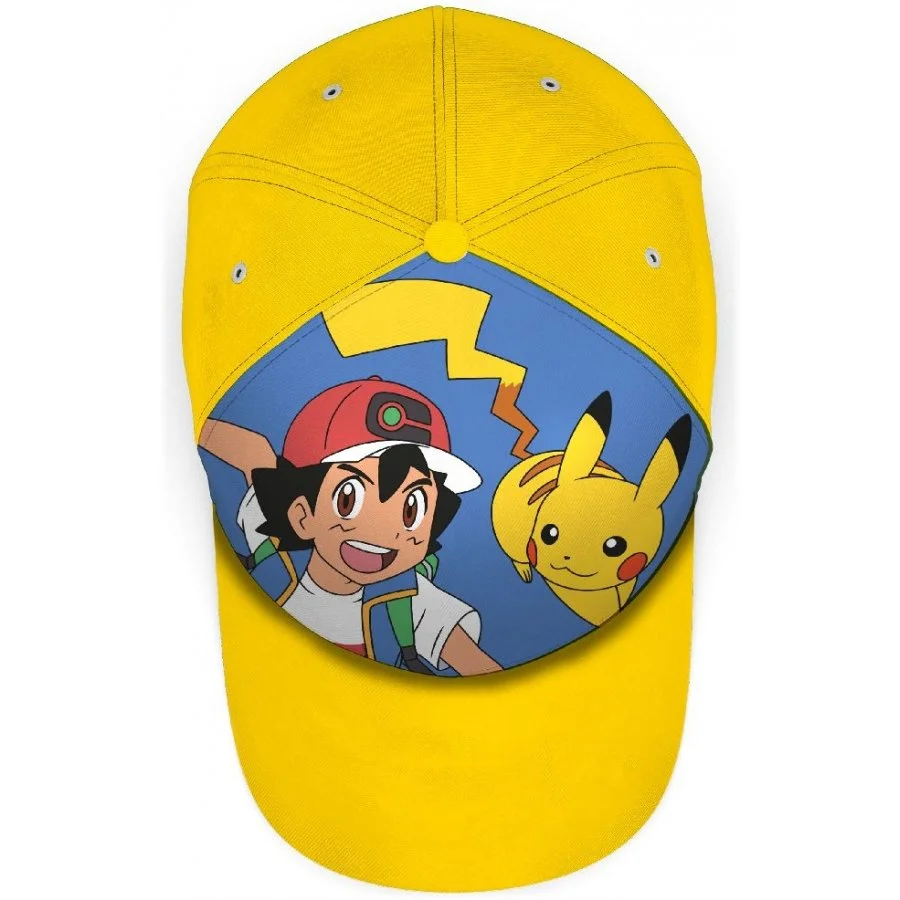 Žlutá baseballová čepice s kšiltem Pokémon - motiv Ash Ketchum a Pikachu. Přední panel kšiltovky ...