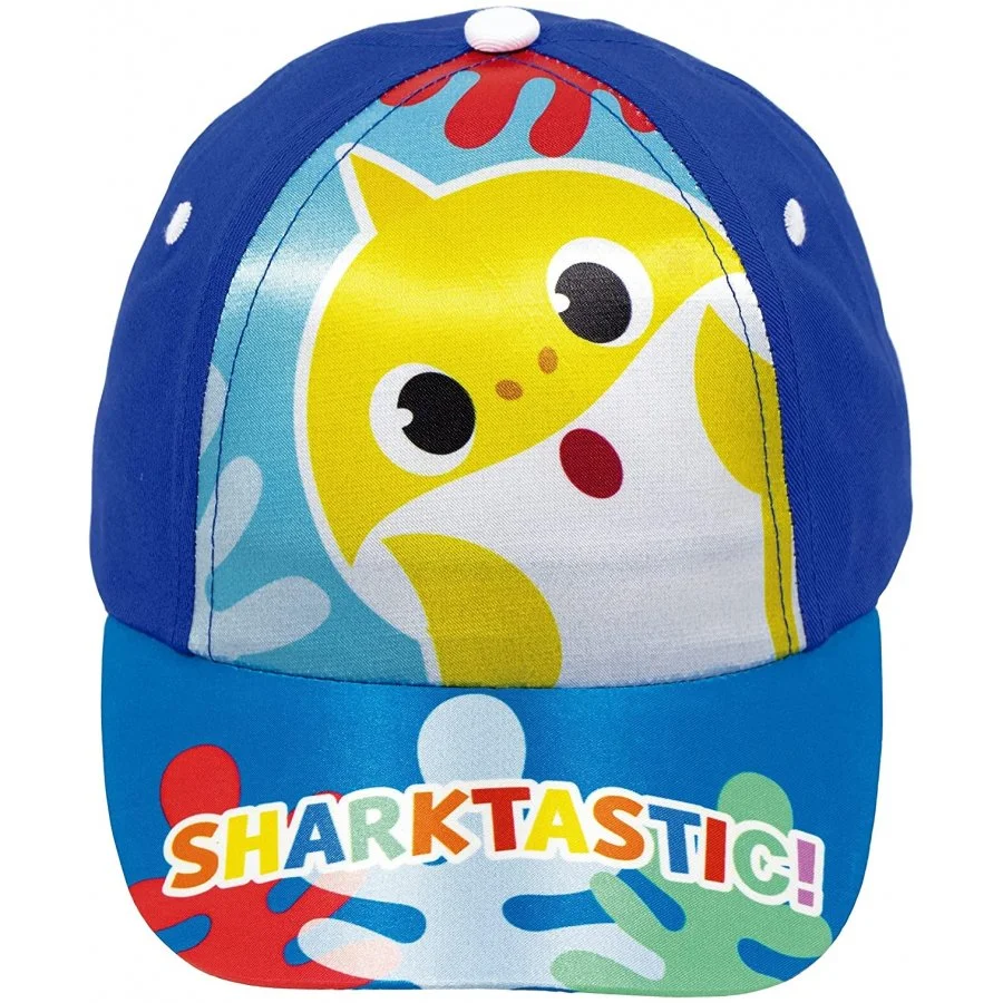 Dětská baseballová čepice s kšiltem Baby Shark. Přední panel čepice zdobí obrázek malého žlutého žraloka. Zbývající část čepice je bílá, nebo modrá - viz výběr barvy. Ze zadní strany je nastavovací pásek se suchým zipem. Tuto čepici dodáváme pouze v jedné velikosti 48/51, tedy pro děti cca 1-3 roky.