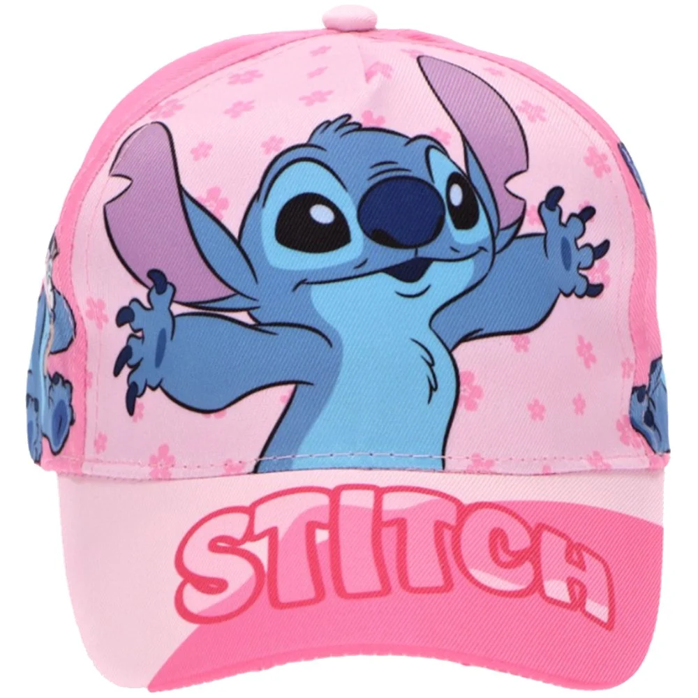 Růžová dětská kšiltovka s veselým motivem Stitche a jeho oblíbené hračky Scrumpa na zadní straně. Nechybí ani nastavitelný pásek se suchým zipem pro pohodlné přizpůsobení velikosti.