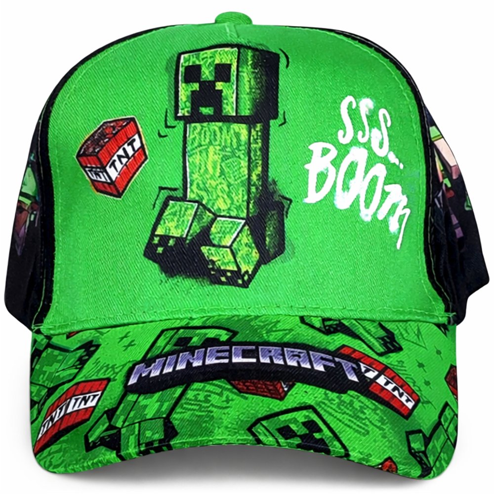 Stylová kšiltovka Minecraft s motivem Creeper SSS Boom. Nabízíme ji ve velikostech 54 a 56. Ze zadní strany má nastavitelný pásek se suchým zipem pro pohodlné přizpůsobení velikosti.