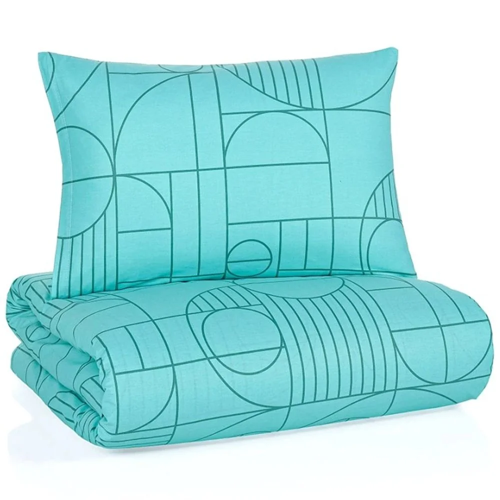 Luxusní ložní povlečení BedTex Exclusive Collection Geo Aquatic Awe v odstínu mentolové barvy. Vyrobeno z kvalitní 100% bavlny Renforcé s moderním geometrickým vzorem. Rozměry 140 x 200 cm a 70 x 90 cm. Praktické zapínání na zip pro snadné použití a údržbu.