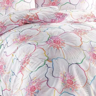 Luxusní bavlněné saténové povlečení Bloom s velkými květy ibišků v jemných pastelových odstínech ...