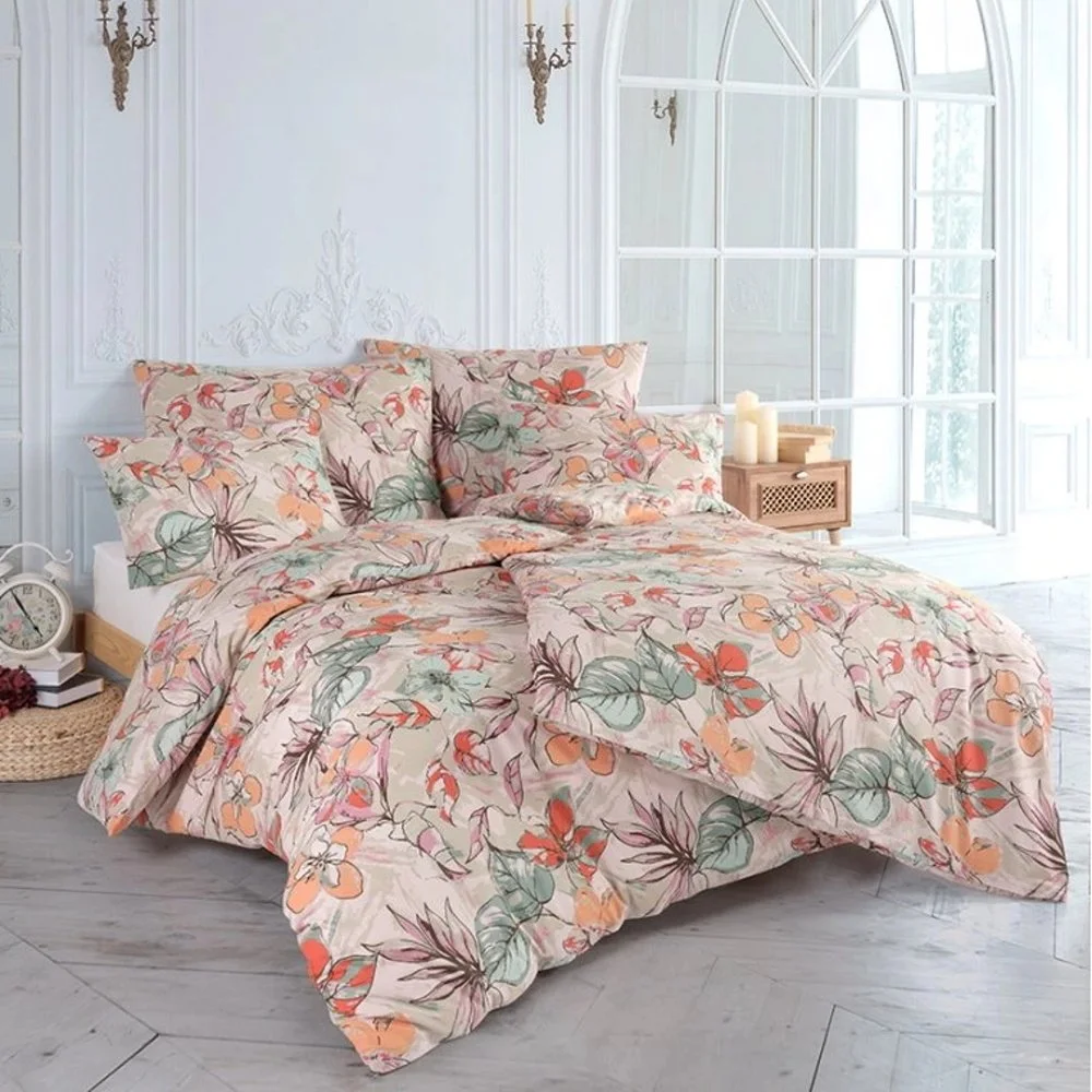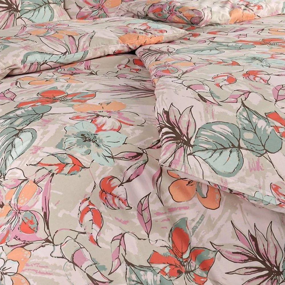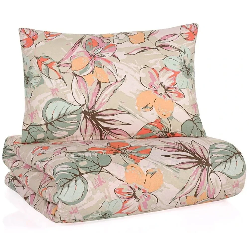 Luxusní bavlněné saténové povlečení Bloom s velkými květy ibišků v jemných pastelových odstínech ...