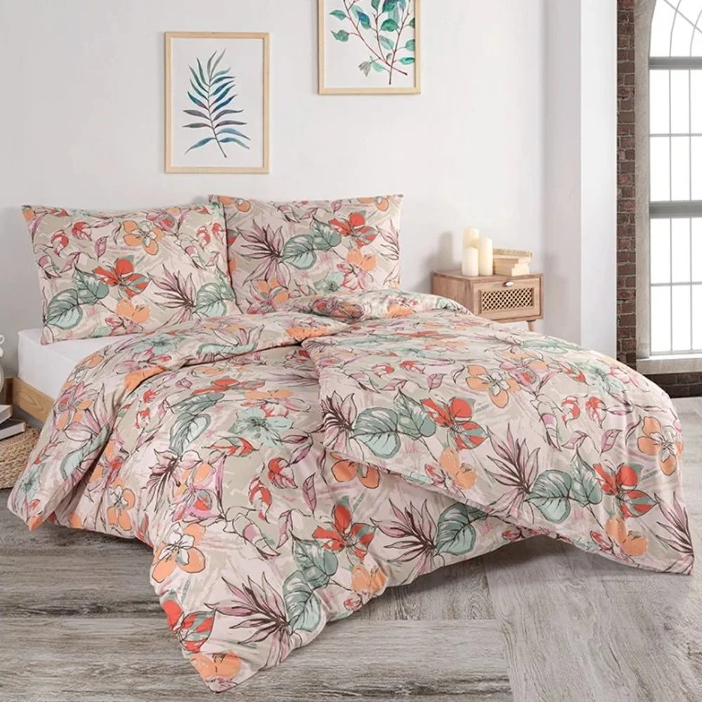 Ložní povlečení Tropická džungle s motivem listů a květů tropických rostlin v pastelových ...