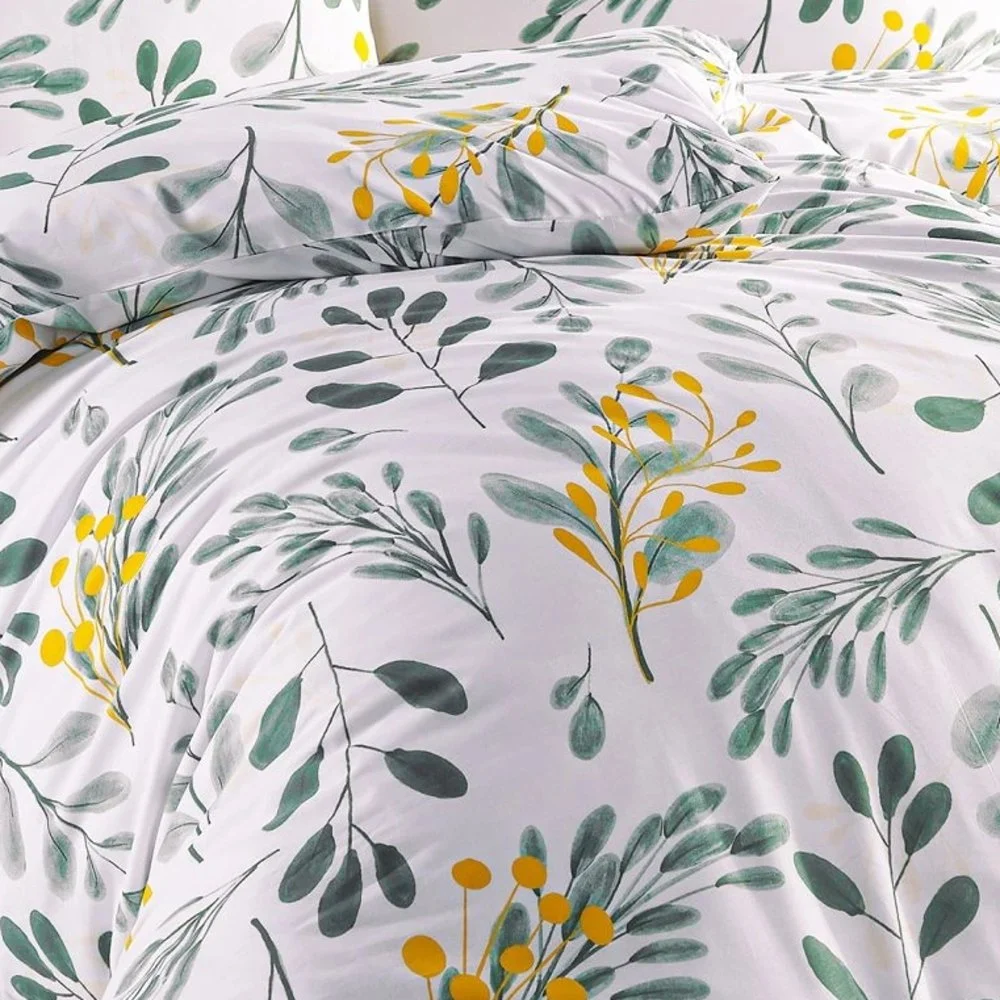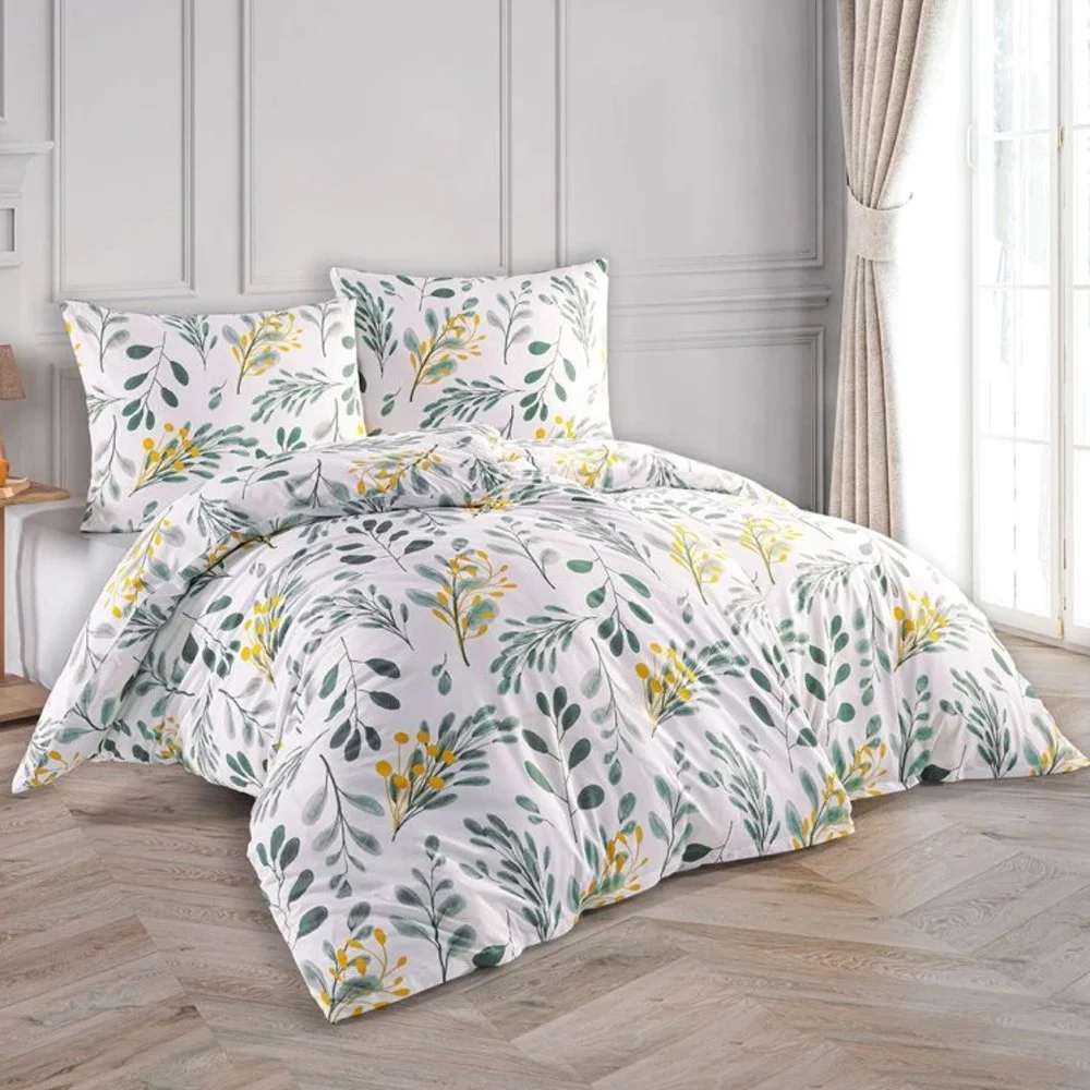 Bavlněná souprava ložního povlečení Floranc ze série BedTex Exclusive s jemným motivem větviček v olivové a hořčicové barvě. Vyrobena z prémiové egyptské bavlny s vazbou Renforcé, která je příjemná na dotek, prodyšná a odolná i při častém praní. Rozměry 140×200 cm a 70×90 cm, se zapínáním na zip.