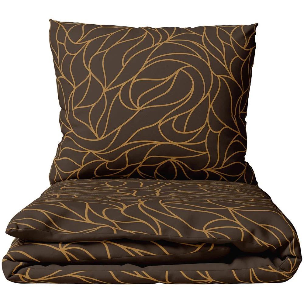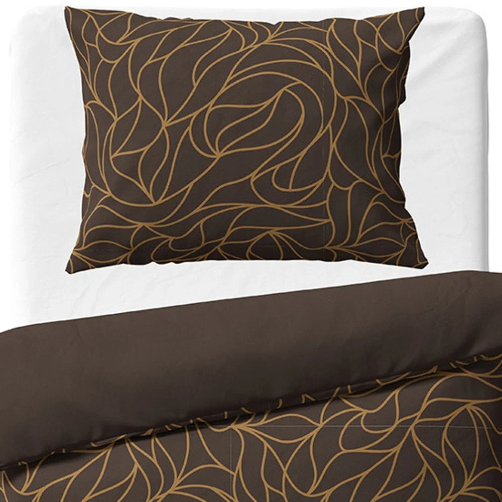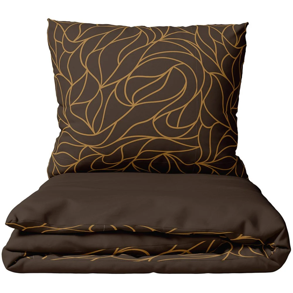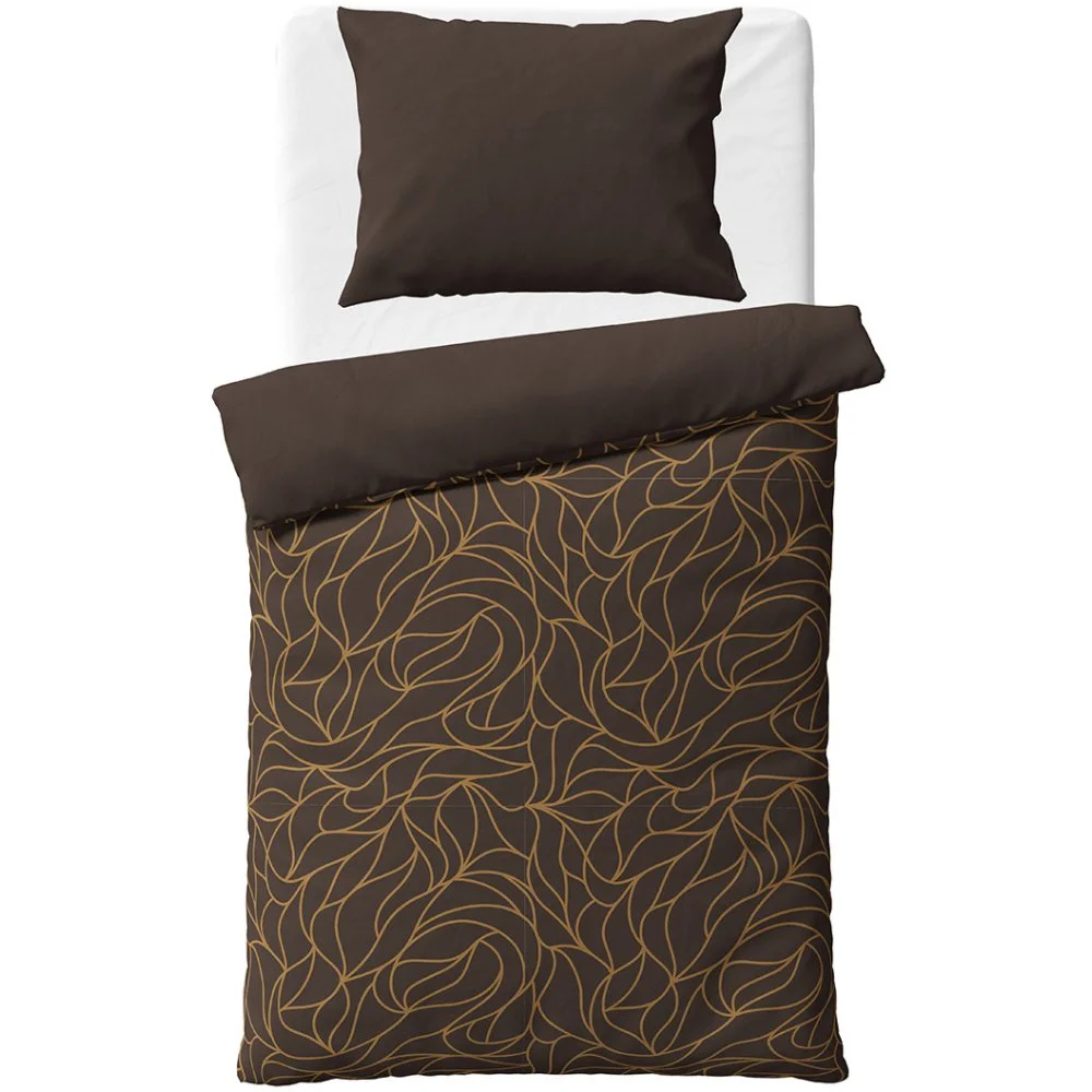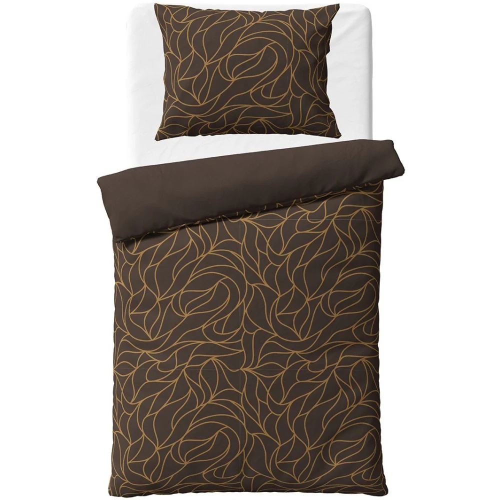 Souprava bavlněného ložního povlečení Dark Dream z kolekce BedTex Home Line s elegantním abstraktním vzorem v hnědo-karamelových liniích na tmavě hnědém podkladu. Vyrobena ze 100% bavlny Renforcé. Rozměry 140 × 200 cm a 70 × 90 cm, zapínání na zip.