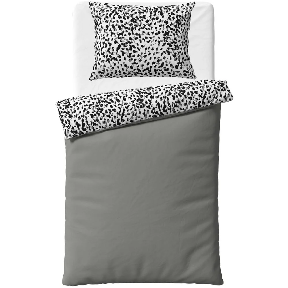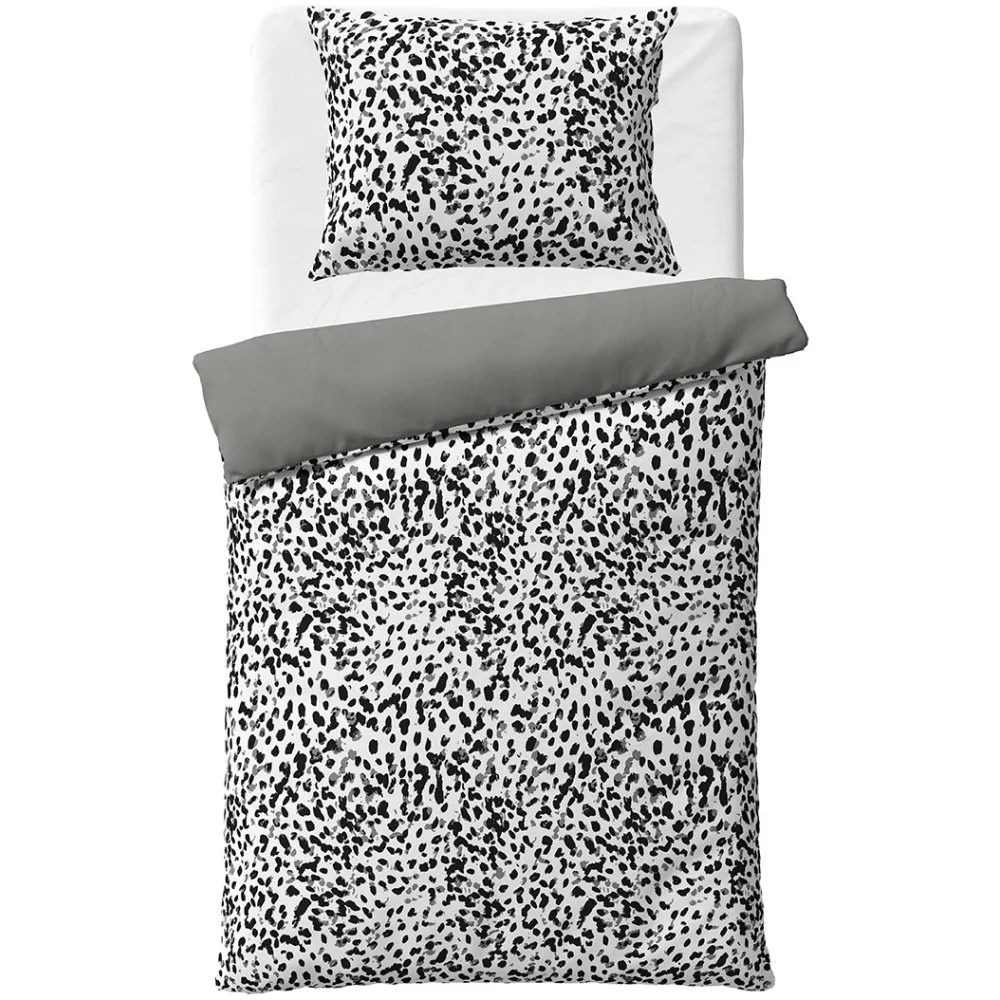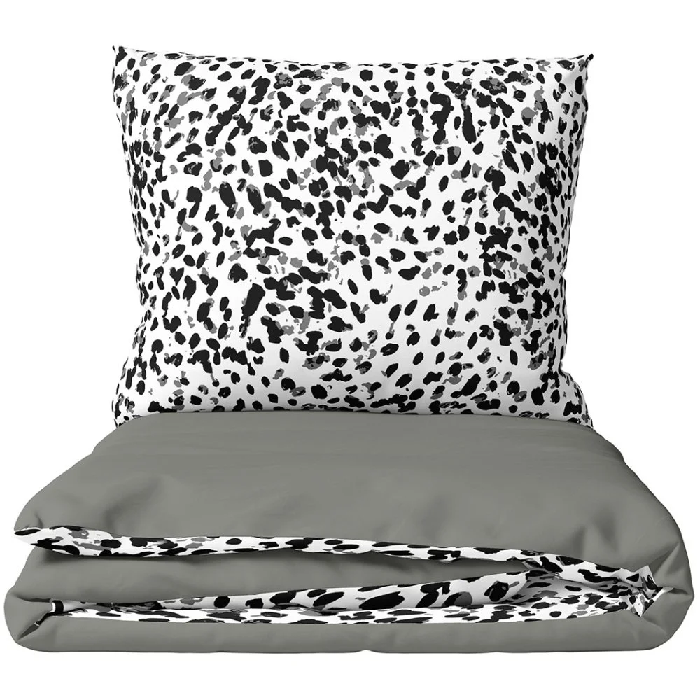 Více o produktuPovlečení Dreams of Wild dodá ložnici moderní a stylový vzhled. Na lícní straně je černo-bílý abstraktní skvrnitý vzor inspirovaný přírodou, doplněný jemnými šedými akcenty, který působí energicky a zároveň elegantně. Rubová strana je jednobarevná v elegantní šedé barvě, která celku dodává harmonii. Díky oboustrannému provedení můžete vzhled ložnice snadno obměňovat.