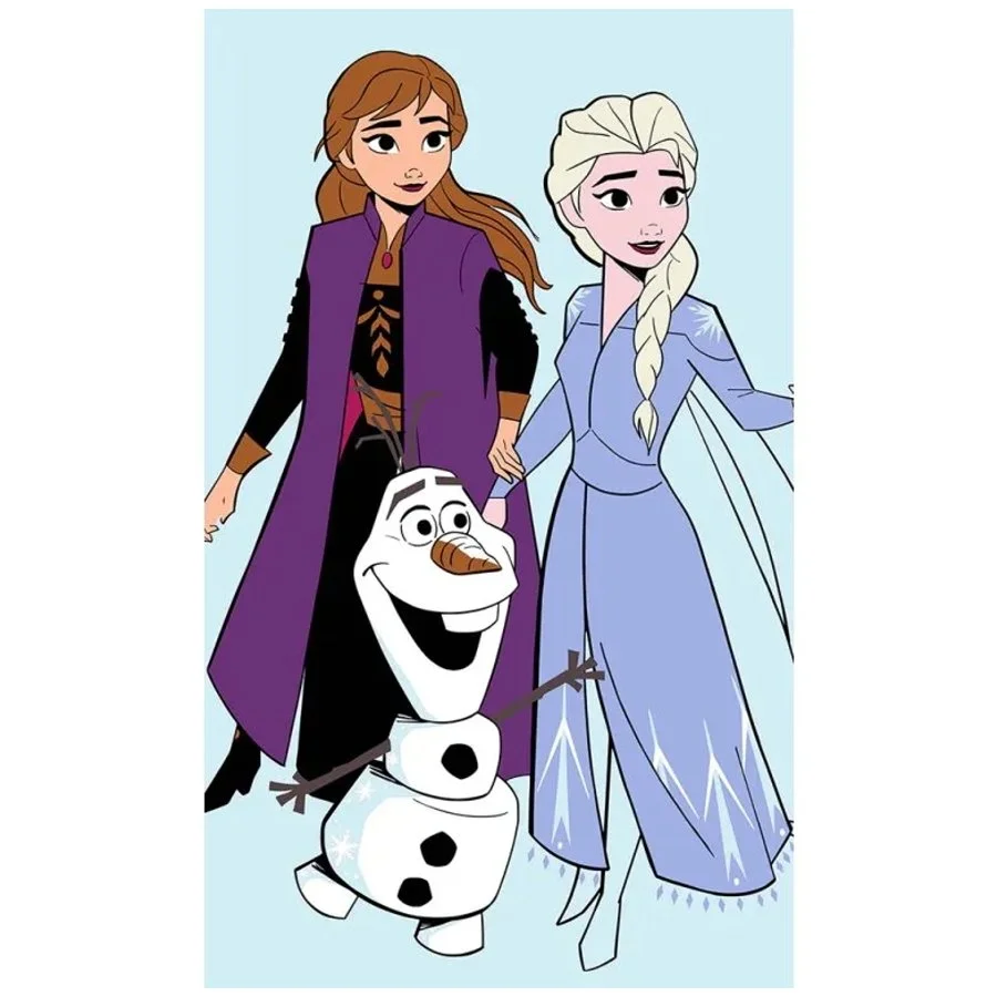 Dívčí ručníček Ledové království - Frozen - motiv Přátelé navždy. Zdobí jej obrázek princezen Anny a Elsy s jejich kamarádem sněhulákem Olafem.
