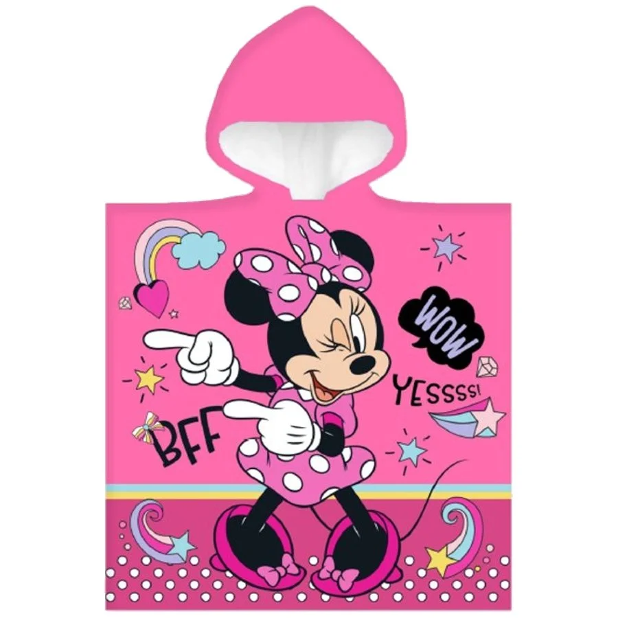 Dívčí bavlněná osuška s kapucí / dětské pončo Minnie Mouse - Disney. Toto osuškové pončo je vyrobené z příjemně jemného a dobře savého 100% bavlněného froté s gramáží 320 gr./m². Je ideální nejen na doma po koupeli, ale i na koupaliště, nebo na pláž třeba na dovolené u moře. Rozměry tohoto dívčího ponča Disney jsou 50 x 100 cm (přední část 50 x 50 cm + záda 50 x 50 cm), je tedy vhodné spíše pro menší děti.