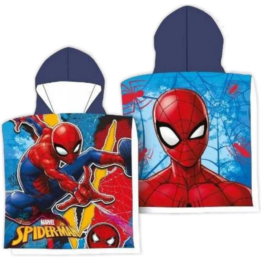 Dětské koupací pončo pro kluky / chlapecká bavlněná osuška s kapucí Spiderman - MARVEL. Toto osuškové pončo je vyrobené z příjemně jemného a dobře savého 100% bavlněného froté s gramáží 320 gr./m². Je ideální nejen na doma po koupeli, ale i na koupaliště, nebo na pláž. Rozměry tohoto dětského ponča Spiderman jsou 55 x 110 cm (přední část 55 x 55 cm + záda 55 x 55 cm).