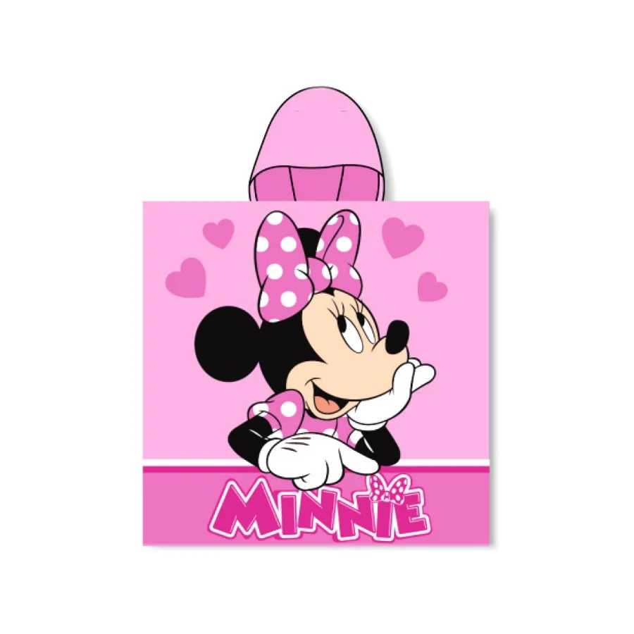 Dívčí osuška s kapucí / dětské pončo s motivem Minnie Mouse - Disney. Toto pončo je vyrobeno z příjemně jemného mikrovlákna s vynikající savostí. S rozměry 50 x 100 cm je ideální pro menší děti. Hodí se po koupeli doma, nebo i na pláž.