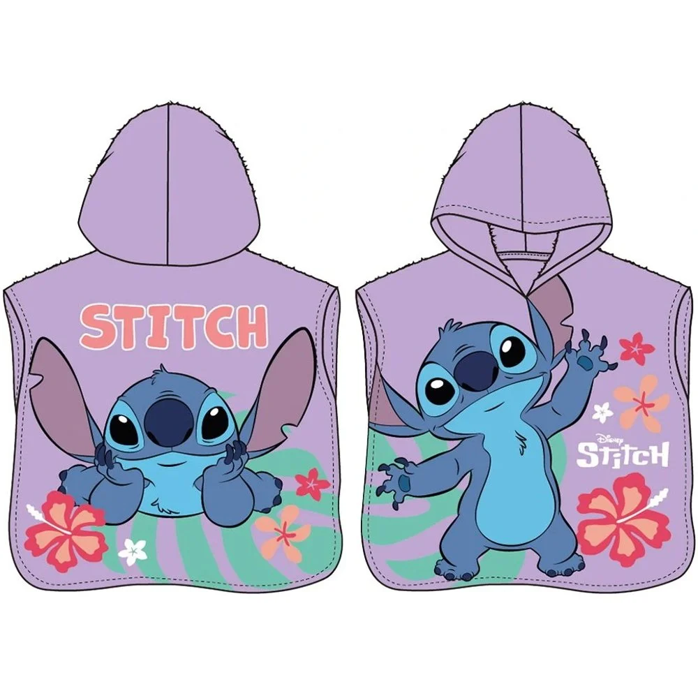 Dětské koupací pončo Lilo a Stitch – motiv Pozdrav z Havaje. Vyrobeno ze 100% bavlny s gramáží 300 g/m², rozměr 50 × 115 cm. Příjemné fialkové pončo s kapucí a veselým motivem Stitche vhodné pro děti od 3 do 6 let.