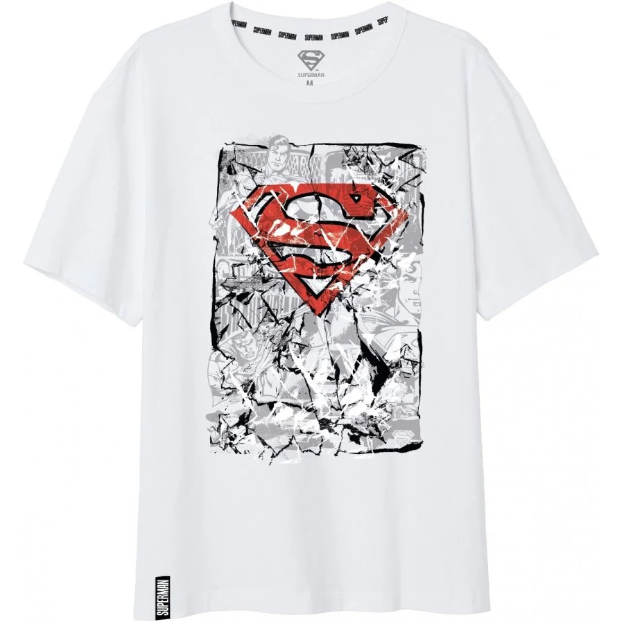 Pánské tričko s kulatým výstřihem Superman. Je vyrobeno ze 100% bavlny 160 GSM. Zdobí jej znak Supermana na koláži ze střípků komiksových příběhů o tomto superhrdinovi.