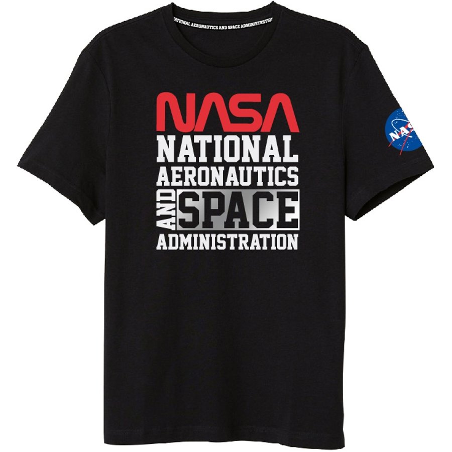 Pánské tričko s kulatým výstřihem NASA. Je vyrobeno ze 100% bavlny 160 GSM. Zdobí ho nápis NASA - National Aeronautics and Space Administration, přičemž slovo "SPACE" je stříbřité. Logo NASA je i na rukávu. Toto tričko nabízíme se stejným potiskem v bílém, nebo černém provedení - viz výběr velikosti a barvy.