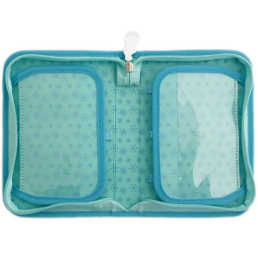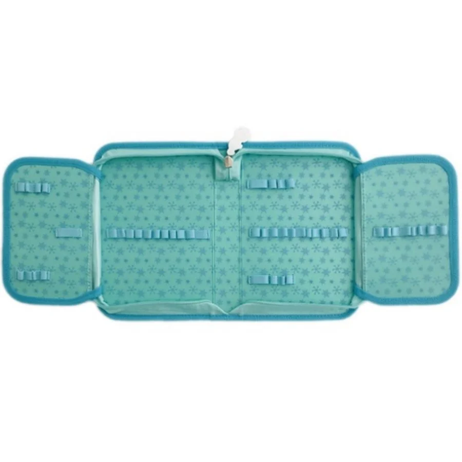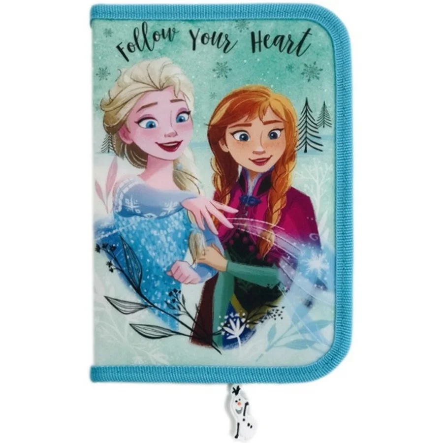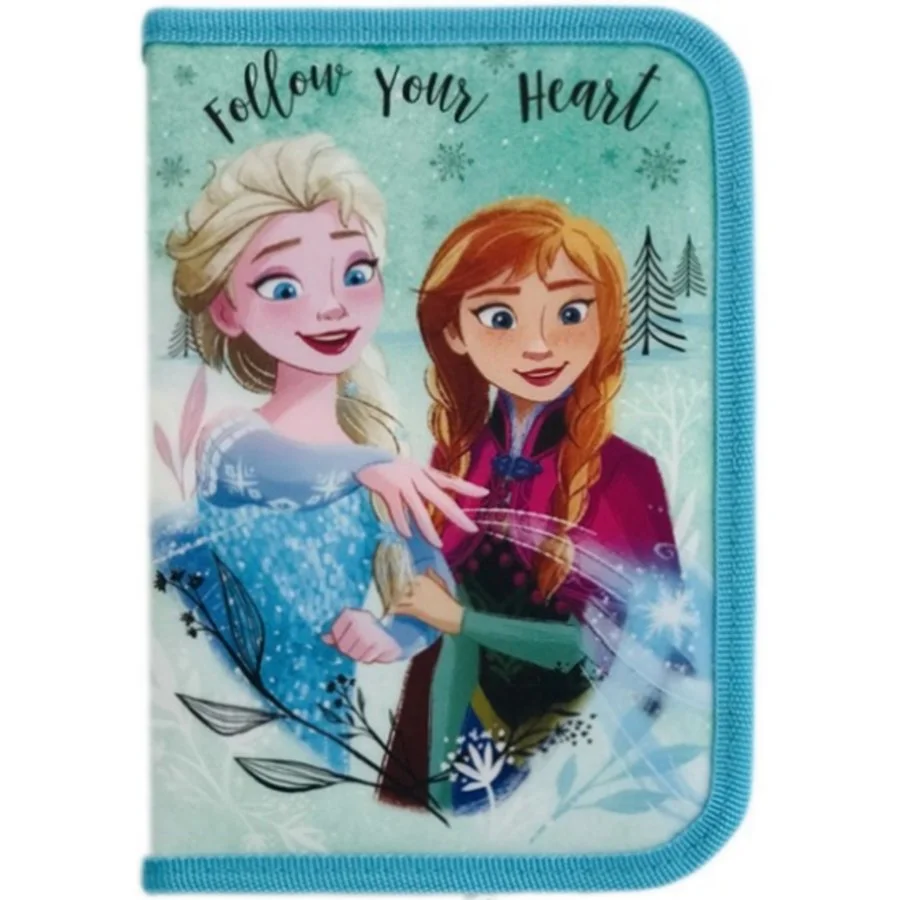 Pouzdro na školní potřeby Ledové království - Frozen - motiv Follow Your Heart, nebo-li česky Následuj své srdce. Jednu stranu zdobí obrázek princezen Anny a Elsy, na druhé straně je jejich kamarád sněhulák Olaf. Tento školní penál je vybaven klasickými gumovými úchyty na tužky, pastelky, nebo fixy i širšími úchyty na pravítko, gumu, nebo ořezávátko. Dále je vybaven dvěmi klopnami s průhlednou fólií na rozvrh hodin či jiné poznámky. Zapínání penálu je na zip.