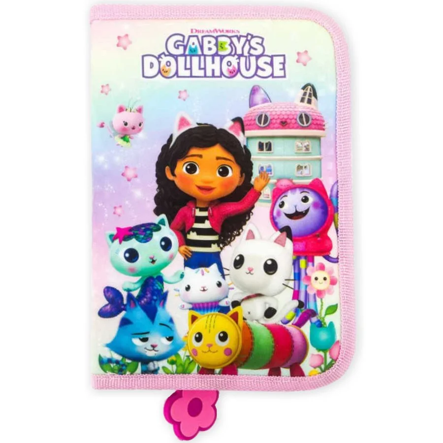 Pouzdro na školní potřeby s motivem Gabby’s Dollhouse - Gábinin kouzelný domek - stylový a praktický školní penál pro malé fanynky holčičky Gábi a jejích kočičích kamarádů. Tento školní penál je navržen s ohledem na maximální funkčnost a pohodlí. Disponuje klasickými gumovými úchyty, které bezpečně drží tužky, pastelky a fixy, a širšími úchyty na pravítko, gumu nebo ořezávátko (vybavení není součástí). Kromě toho obsahuje dvě klopny s průhlednou fólií, které jsou ideální pro uložení rozvrhu hodin, poznámek nebo jiných důležitých papírků, takže vaše dítě bude mít všechny důležité informace vždy na dosah. Penál se snadno otevírá a zavírá pomocí zipu, což zajišťuje rychlý přístup k psacím potřebám a jejich bezpečné uložení. S rozměry přizpůsobenými pro školní použití a originálním designem Gabby’s Dollhouse je tento penál nejen praktický, ale i stylový doplněk, který potěší každou malou školačku.