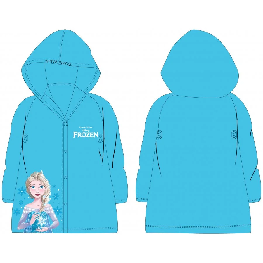 Dětská pláštěnka Ledové království 2 - Frozen 2 - motiv Elsa. Je vyrobena z měkkého, ale přesto pevného PVC světle modré barvy. Má zapínání na druky a větrání v podpaží. Na přední straně je ozdobena logem Frozen o obrázkem princezny Elsy. Tuto pláštěnku pro holky dodáváme ve velikostech 104/110, 116/122, nebo 128/134.