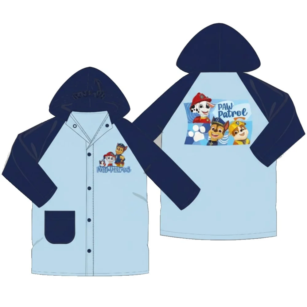 Dětská pláštěnka Paw Patrol pro kluky s kapucí, zapínáním na druky a jednou kapsou. Nabízíme ji ve velikostech 98, 104, 110 nebo 116, tedy pro děti cca 3 - 6 let. Ideální do školky, na hřiště i na cesty v deštivém počasí.