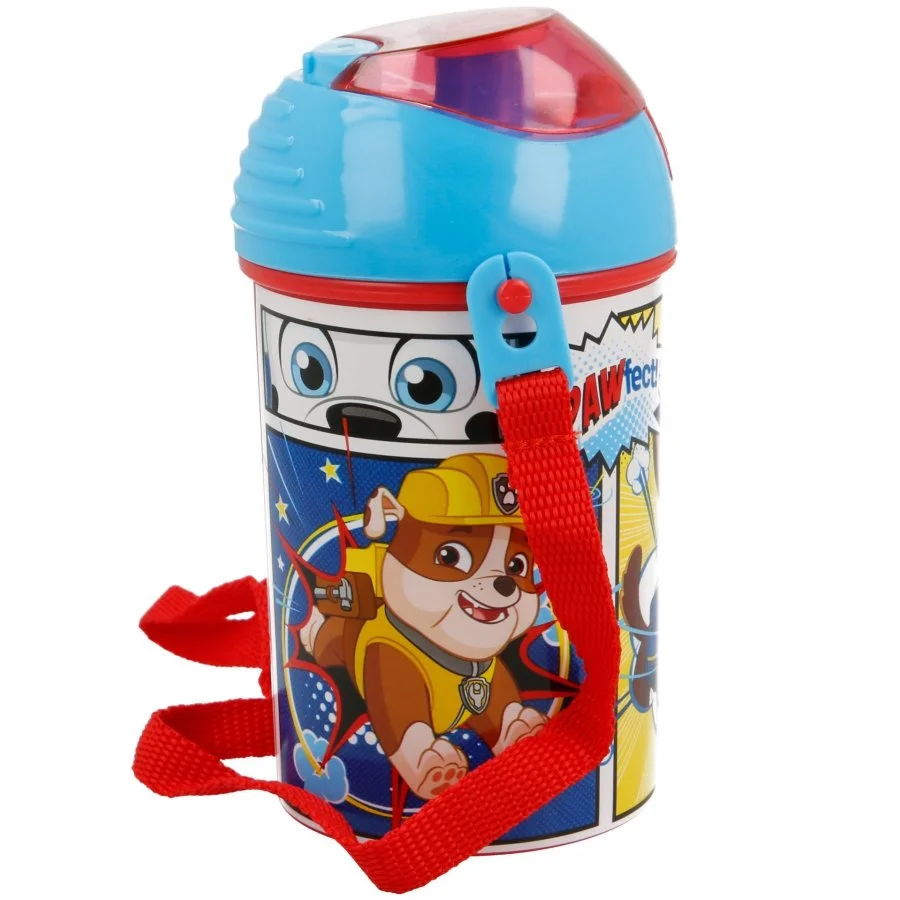 Dětská láhev na pití Tlapková patrola - Paw Patrol. Je vybavena víčkem, které lze snadno otevřít jedním tlačítkem. Po otevření víčka se automaticky vysune brčko na pití, po uzavření udržuje víčko picí slámku čistou. Tato láhev je ideální do školy, na trénink jakéhokoliv sportu, nebo ... Celý text