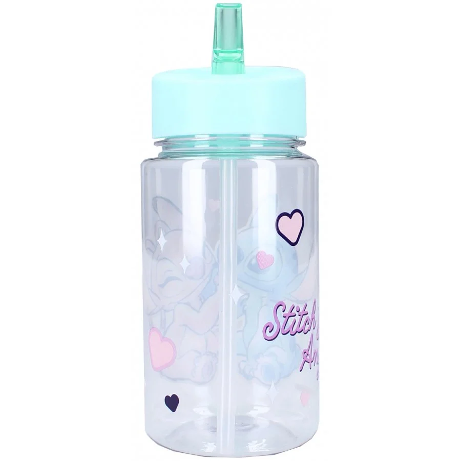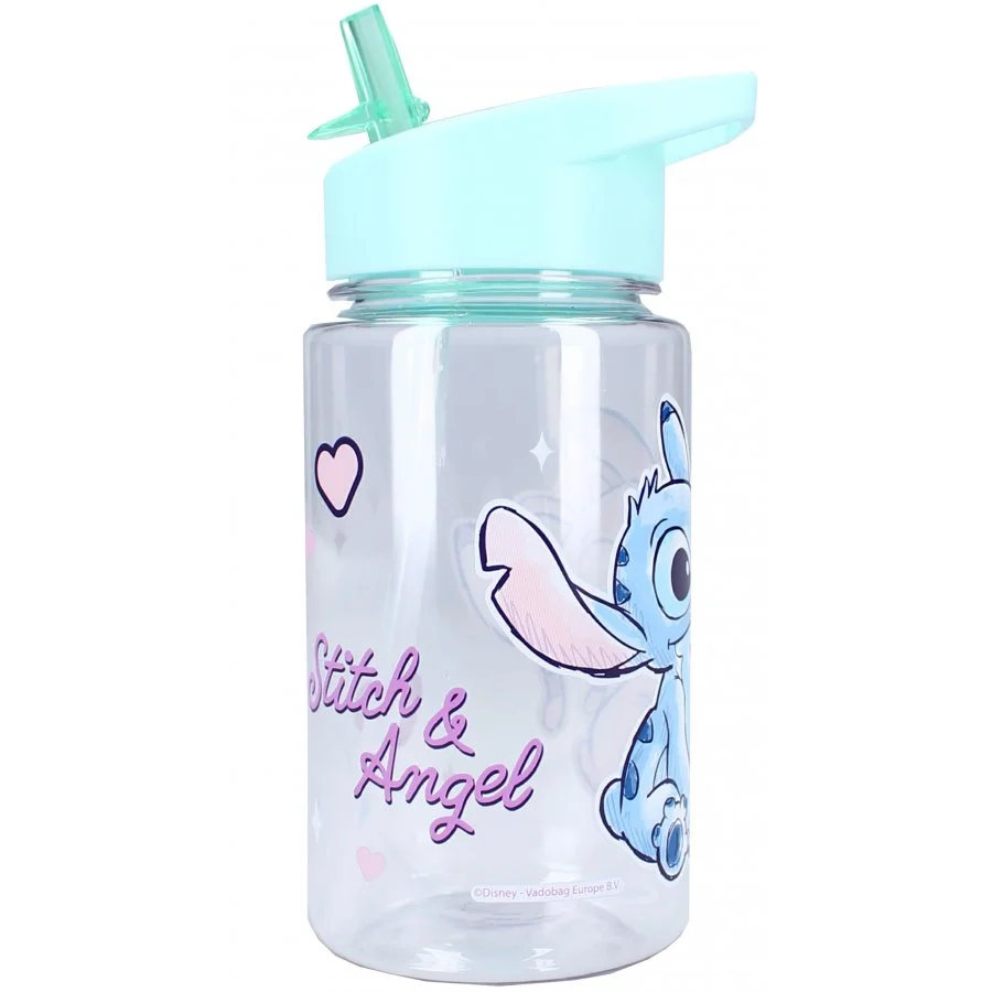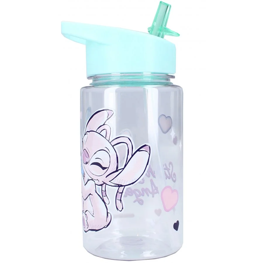 Dětská láhev na pití Lilo & Stitch s integrovaným brčkem a ouškem. Zdobí ji obrázek mimozemšťana Stitche s jeho přítelkyní Angel a spousta srdíček. Je vyrobena z odolného a zdravotně nezávadného plastu bez obsahu BPA. Není vhodná do myčky na nádobí, ani do mikrovlnné trouby. K čištění nepoužívejte abraziva ani detergenty. Tato láhev je vhodná pro děti od 3 let. Její objem je 450 ml.