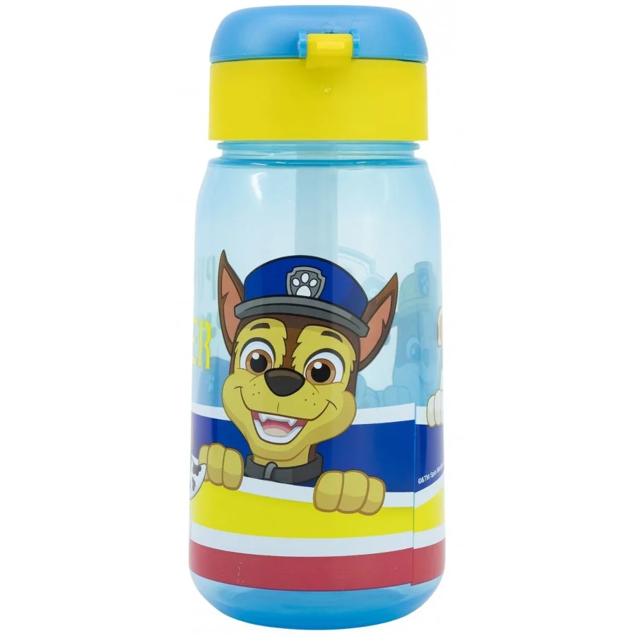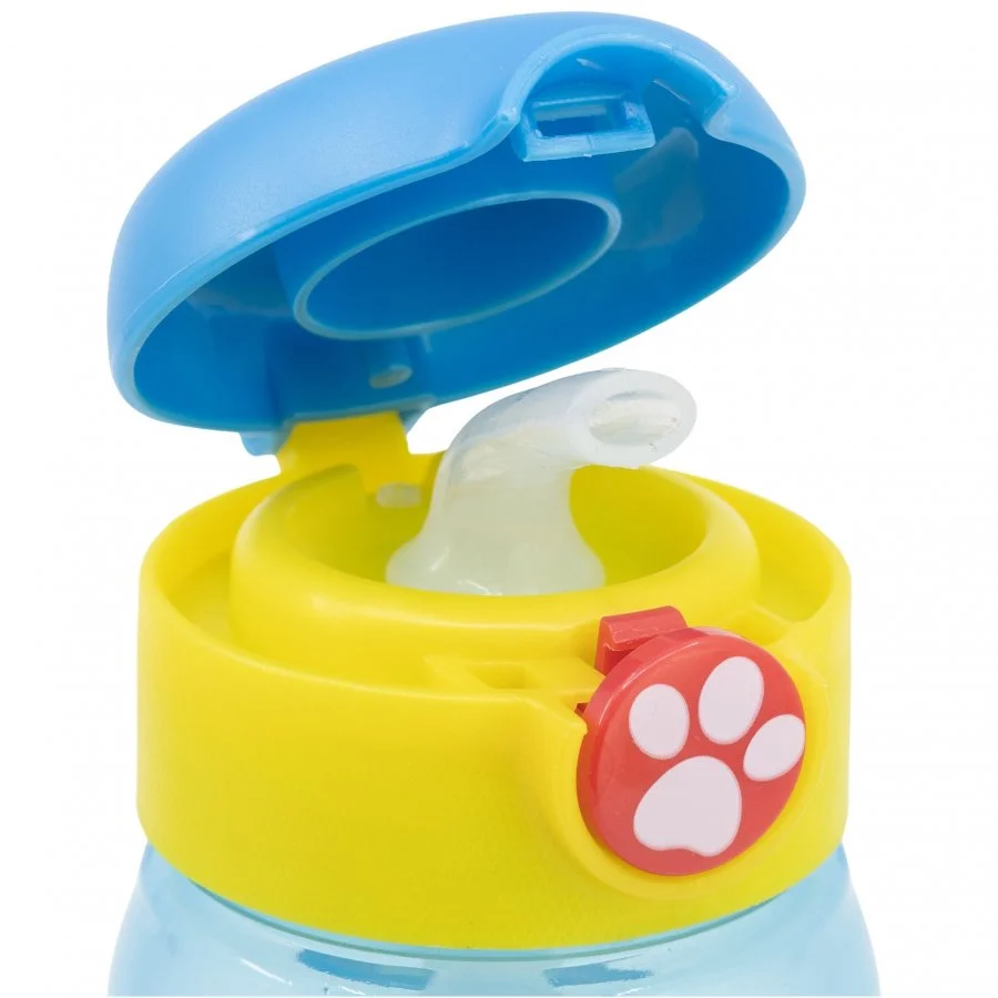 Dětská láhev na pití s motivem Tlapková patrola - Paw Patrol - je vyrobena z odolného, zdravotně nezávadného plastu bez BPA. Láhev má praktický uzávěr, který se otevírá stisknutím tlačítka, a pod ním se nachází silikonové brčko pro pohodlné pití. Není vhodná do myčky na nádobí ani do mikrovlnné trouby. Při čištění se vyvarujte abrazivních prostředků a detergentů. Láhev je ideální pro děti od 3 let a její objem je 510 ml.