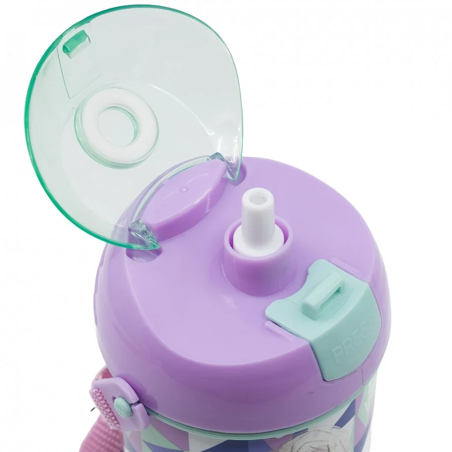Dětská láhev na pití s motivem Ledové království - Frozen. Je vybavena praktickým víčkem, které lze snadno otevřít stisknutím tlačítka. Po otevření se automaticky vysune brčko, které po zavření zůstává čisté díky ochrannému víčku. Láhev je ideální do školy, na tréninky nebo na výlety. Je vyrobena ze zdravotně nezávadného materiálu bez BPA. Není vhodná do myčky ani do mikrovlnné trouby. K čištění nepoužívejte abrazivní prostředky ani detergenty. Před prvním použitím umyjte láhev teplou vodou a saponátem. V případě poškození, zejména perforace brčka, láhev nepoužívejte. Láhev je vhodná pro děti od 3 let. Její objemem je 450 ml.