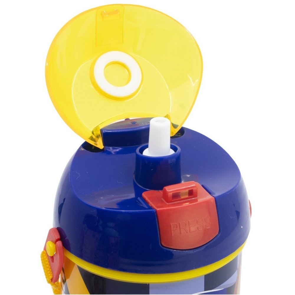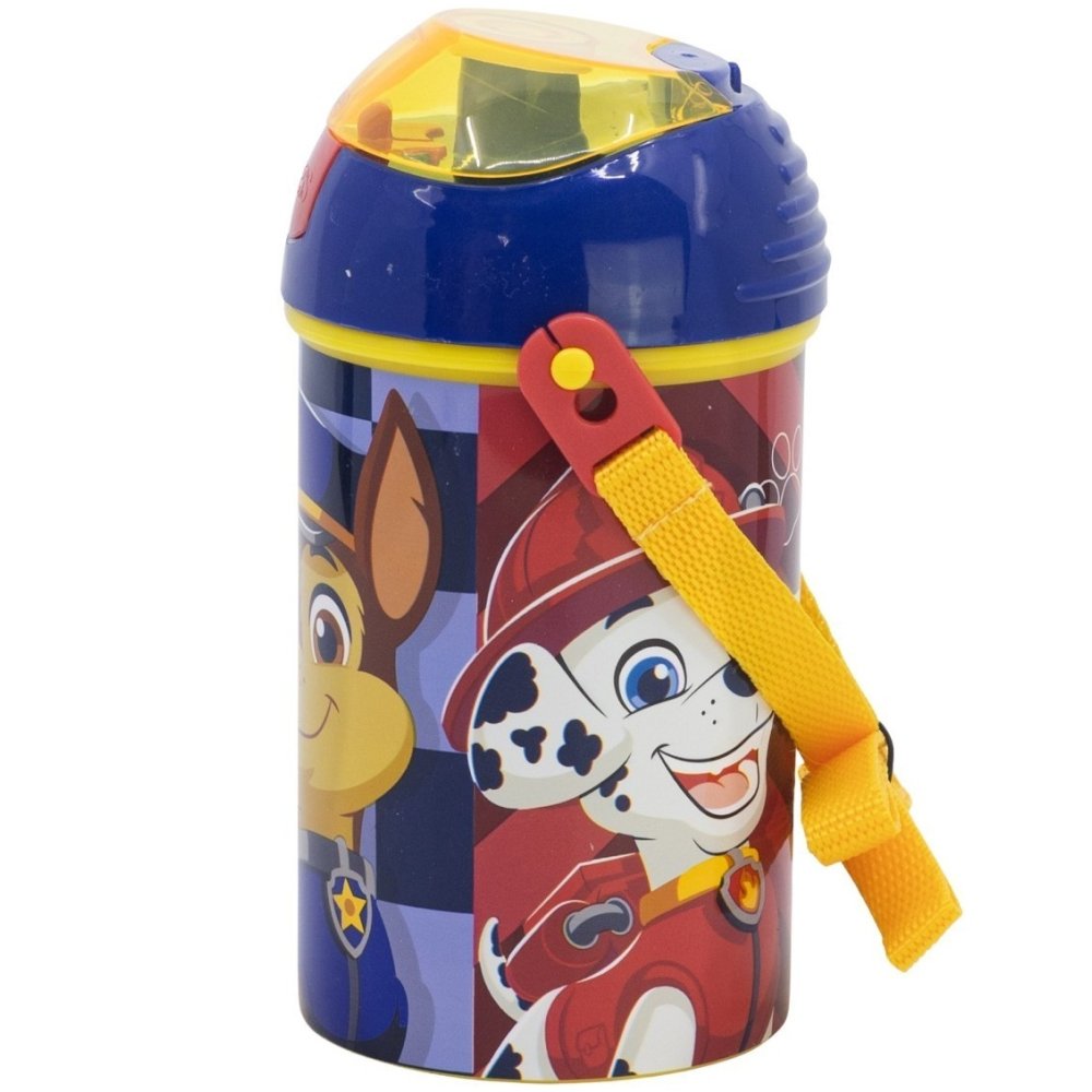 Praktická láhev s motivem oblíbených záchranářů z Tlapkové patroly. Je vyrobena z odolného plastu bez obsahu BPA. Má automatický otevírací systém s víčkem a silikonovou slámkou i textilní popruh přes rameno. S objemem 450 ml je ideálním společníkem do školky, školy i na výlety.