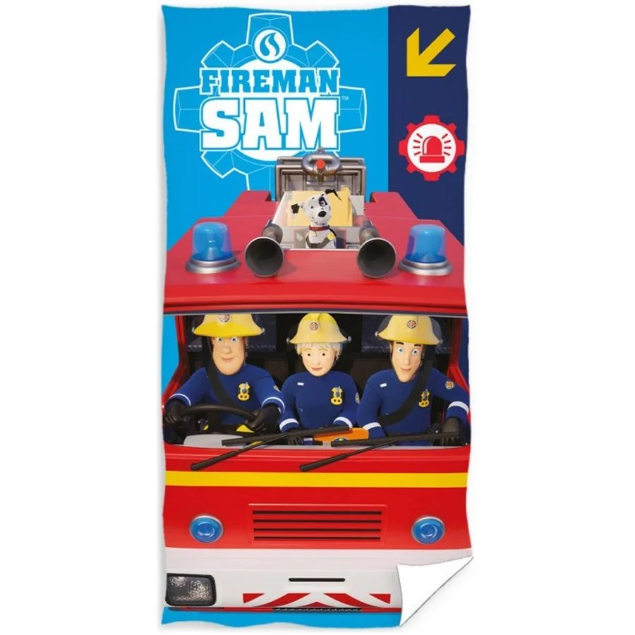Dětská bavlněná osuška Hasič Sam - Fireman Sam - motiv Hasičský výjezd. Zdobí ji obrázek Sama, Penny a Elvise, kteří vyrážejí na záchranou misi. K tomu jim nesmí chybět ani jejich pejsek dalmatin Simba. Je vyrobená ze 100% bavlněného dobře savého froté s gramáží 300 g/m². Je ideální nejen na doma, ale hodí se i na pláž, nebo k bazénu. Barvy této osušky Požárník Sam jsou velice intenzivní i po mnoha vypráních. Její rozměry jsou 70 x 140 cm.