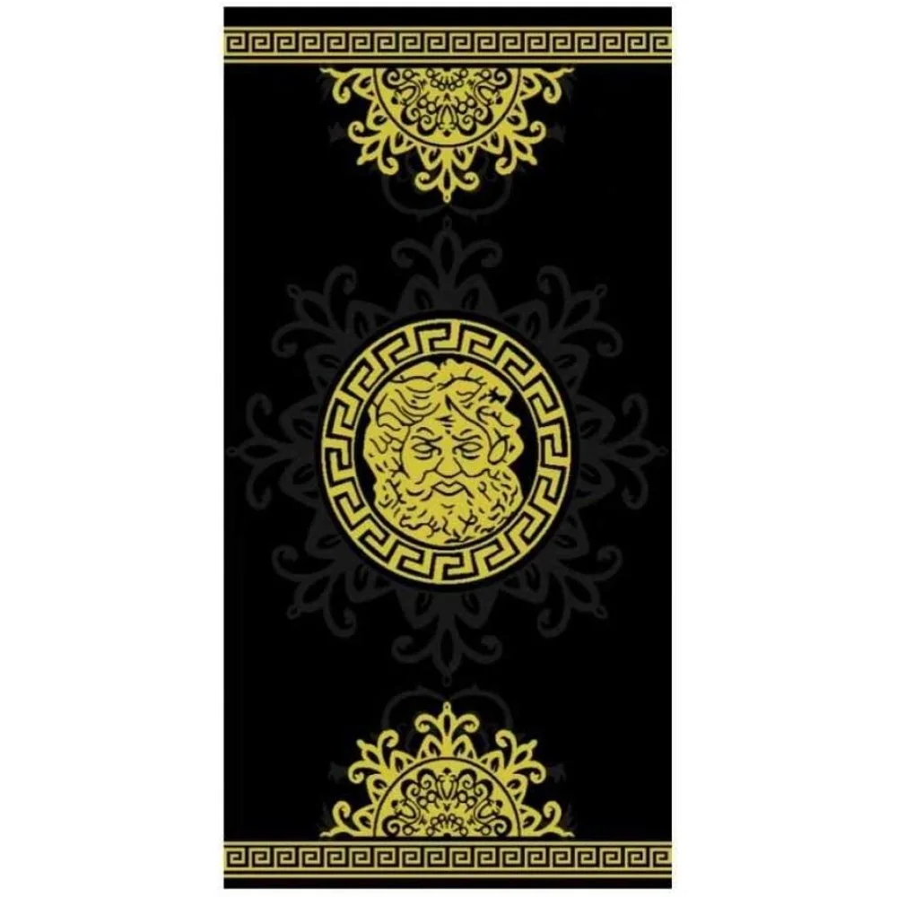 Velká oboustranná plážová osuška s antickým motivem boha Zeuse z kvalitní 100% egyptské bavlny. Jemné froté s vysokou gramáží pro skvělou savost a hebkost. Rozměr 90×165 cm – nadstandardní velikost. Certifikace Oeko-Tex Standard 100.