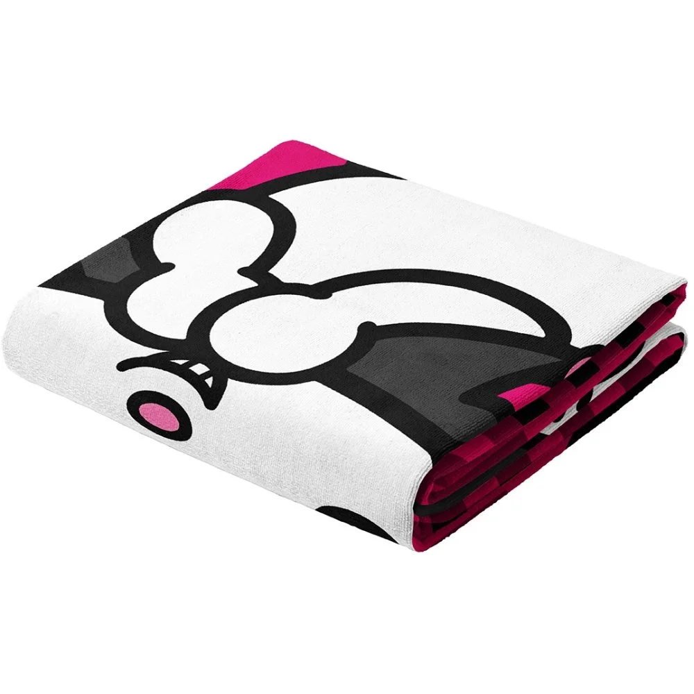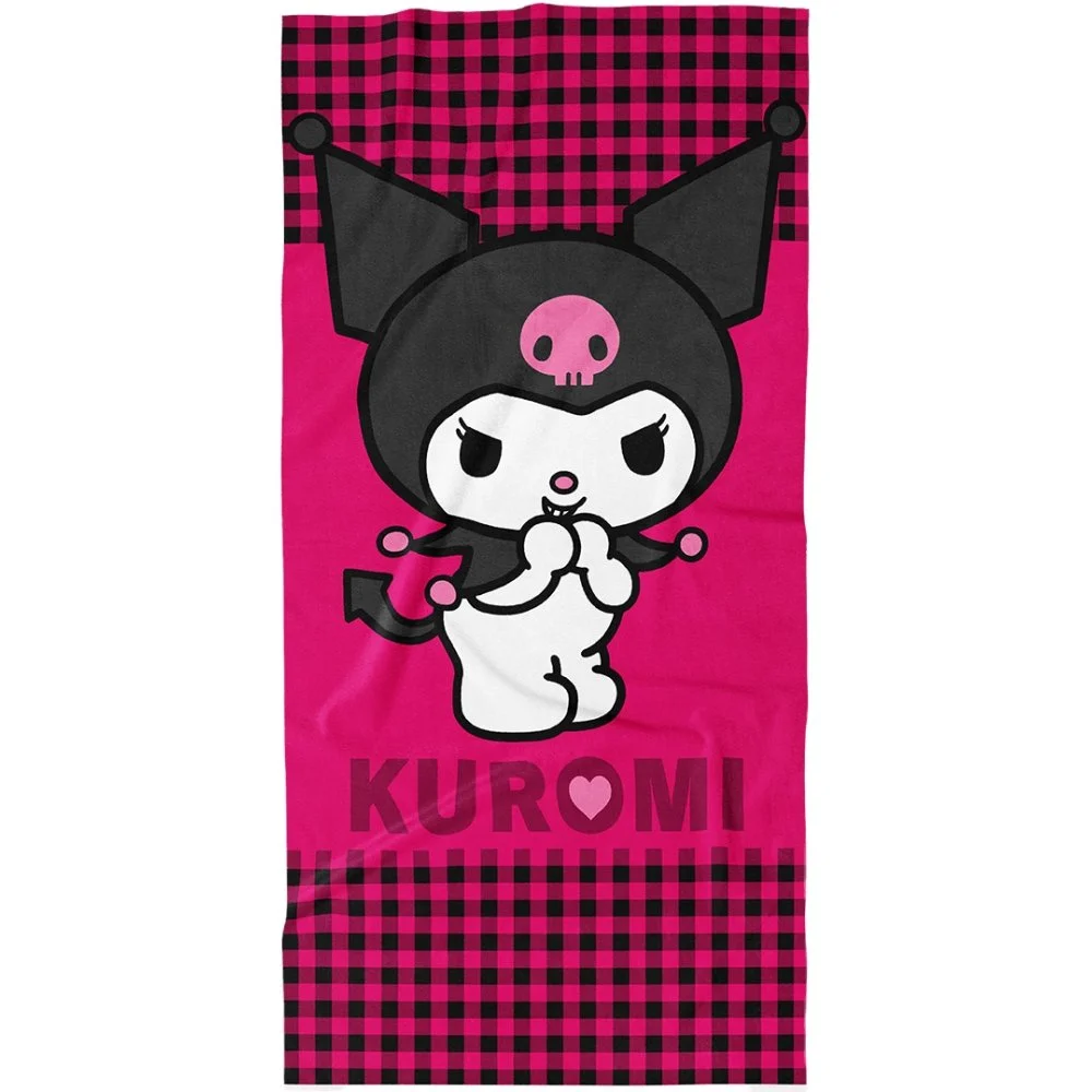 Dívčí osuška s motivem malého ďáblíka Kuromi – odvážné a hravé postavičky ze světa Sanrio, na výrazném růžovo-černém pozadí s kostkovaným vzorem. Vyrobena ze 100% bavlny s gramáží 320 gr./m², rozměr 70 × 140 cm. Ideální k vodě i do koupelny.
