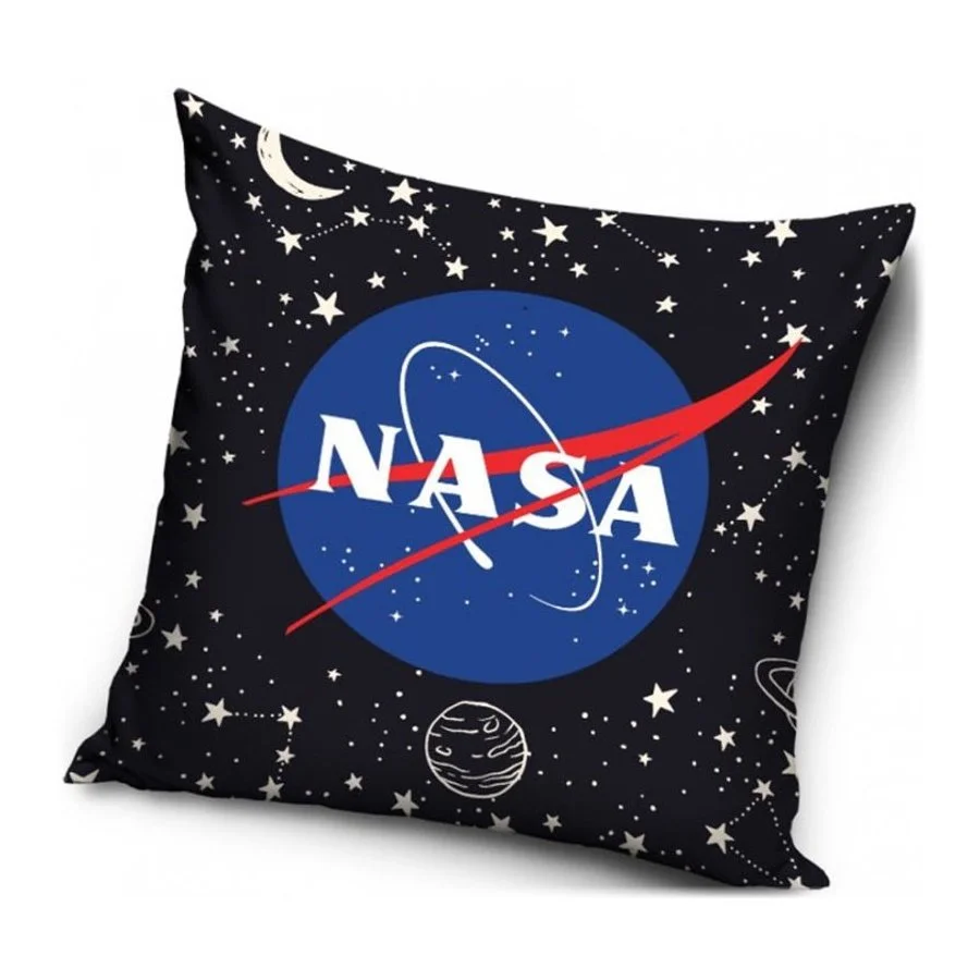 Povlak na polštářek NASA s logem Americké vládní agentury pro pro letectví a kosmonautiku na černém podkladu s hvězdami a planetami. Tento povlak polštáře je vyroben z příjemně jemného nemačkavého materiálu a má zapínání na zip. Obě strany zdobí stejný motiv.