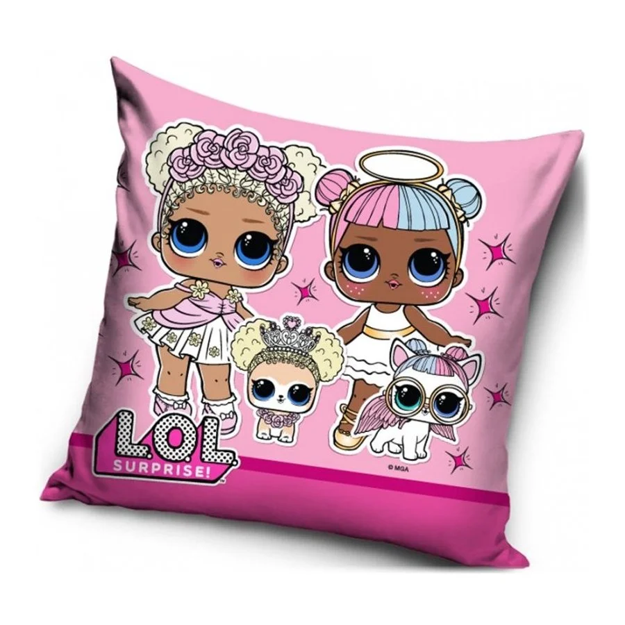 Polštářek L.O.L. Surprise s obrázkem oblíbených panenek L.O.L. s jejich mazlíčky. Povlak ...