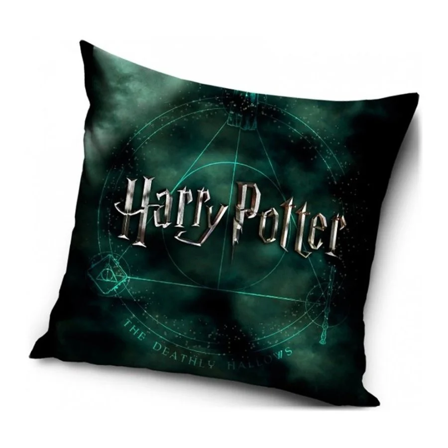Povlečení na polštářek Harry Potter - motiv Relikvie smrti. Tento povlak polštáře je motivovaný v pořadí sedmou knihou o čarodějnickém učni Harrym Potterovi. Zdobí jej symbol tří magických předmětů na pozadí velkého nápisu Harry Potter. Je vyroben z příjemně jemného nemačkavého materiálu a má zapínání na zip. Obě strany zdobí stejný motiv.